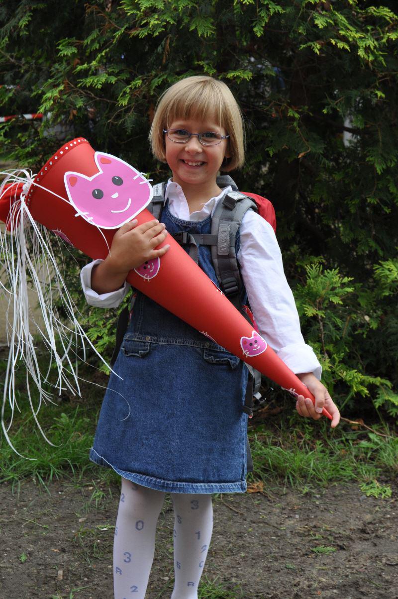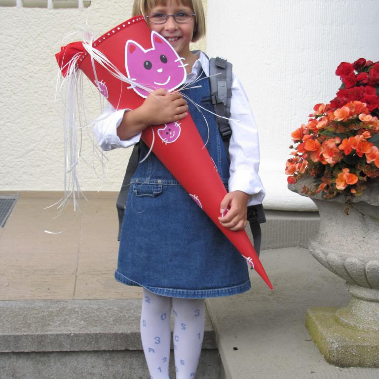 Meinen Schulrucksack hatte ich ja schon ganz lange und am Anfang der Ferien haben wir auch schon alles gekauft, was Frau Eckervogt, meine Klassenlehrerin, uns per Post zu besorgen aufgetragen hatte. Nur meine Schultüte bekam ich erst heute.