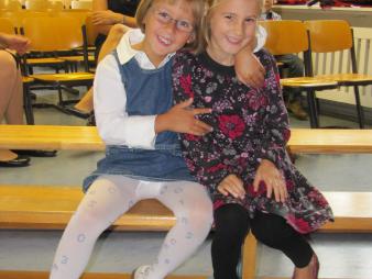 In der Aula angekommen setzte ich mich gleich in die erste Reihe und wartete auf meine Freundinnen. Die kamen mit Leonie und Matilda auch bald.