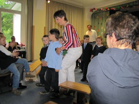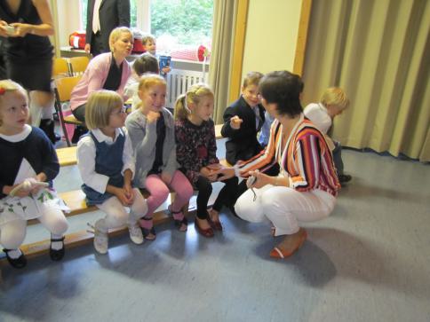 Dort sangen wir mit Frau Eckervogt und Frau Rewicki ein Lied und bekamen eine kleine Hausaufgabe mit. Nach einer halben Stunde kamen alle anderen hoch, machten Fotos und holten uns ab.