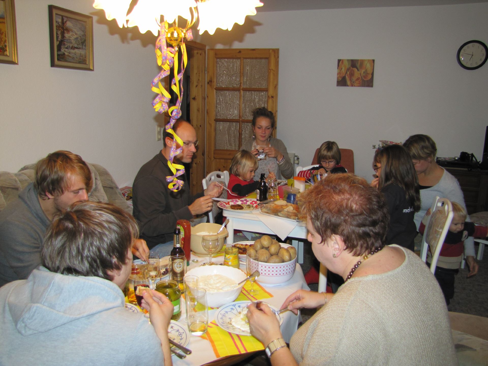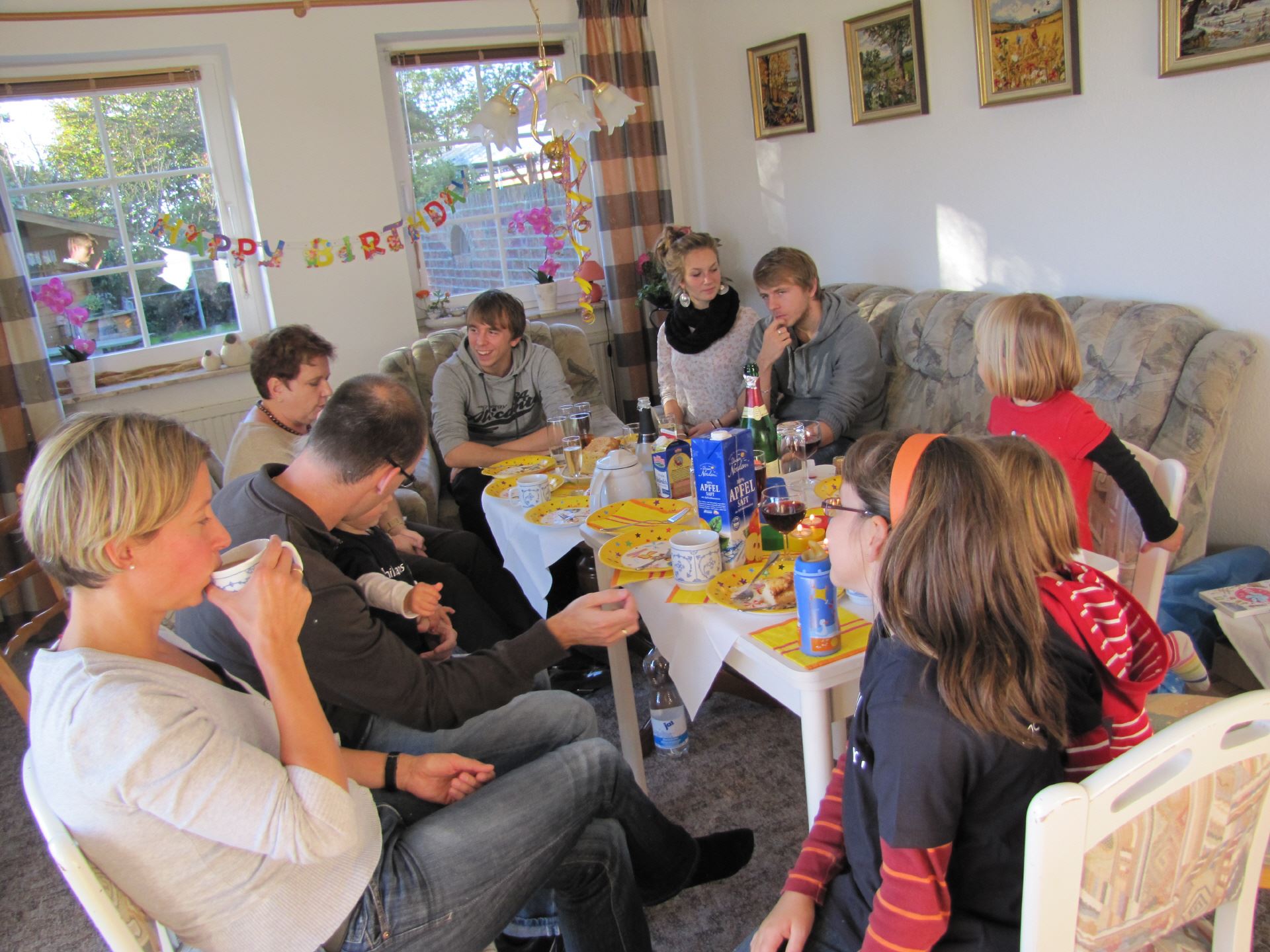 Als erstes haben wir zu Haus leckeren, von Oma gebackenen, Kuchen und Muffins gegessen.