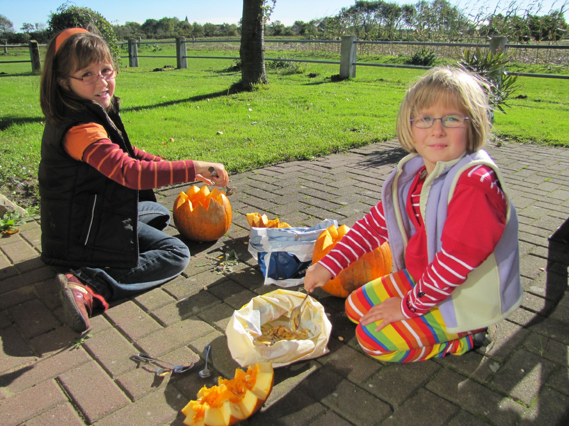 Die am vormitag ausgekratzen Kürbisse leuchteten