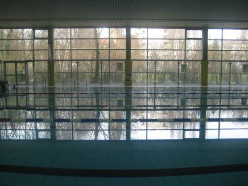 Noch ist alles ruhig in der Halle und das Wasser ganz glatt.