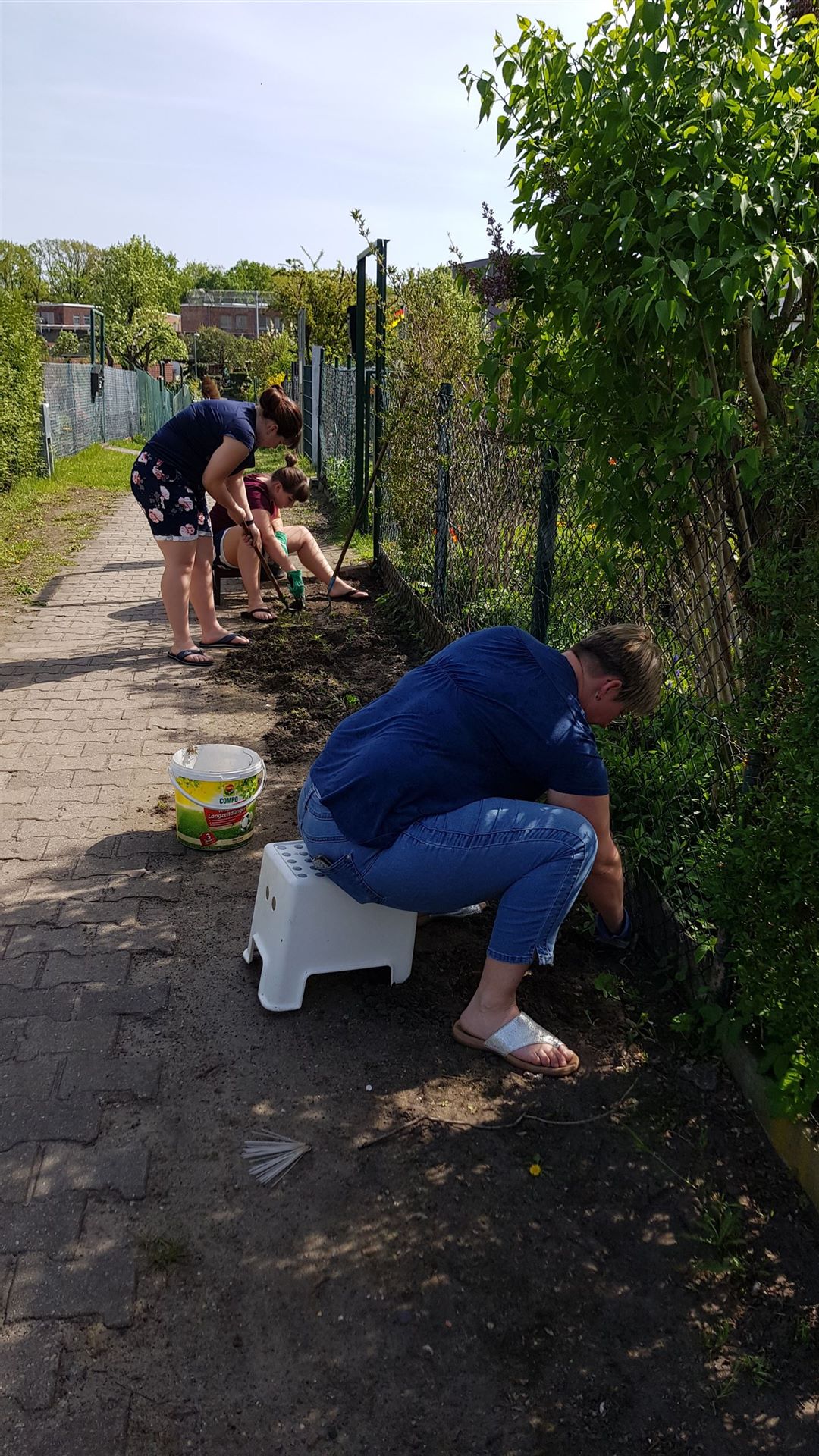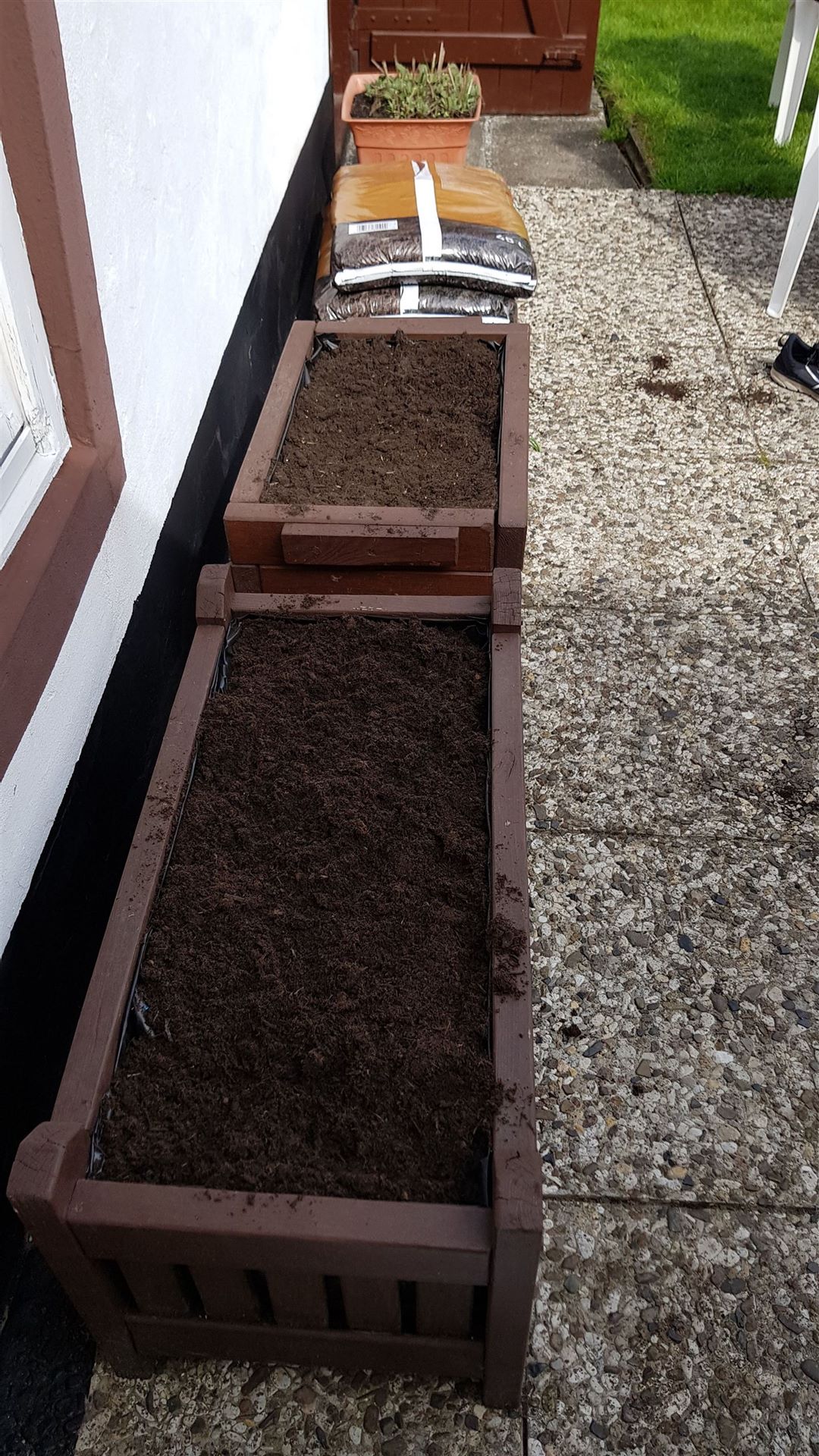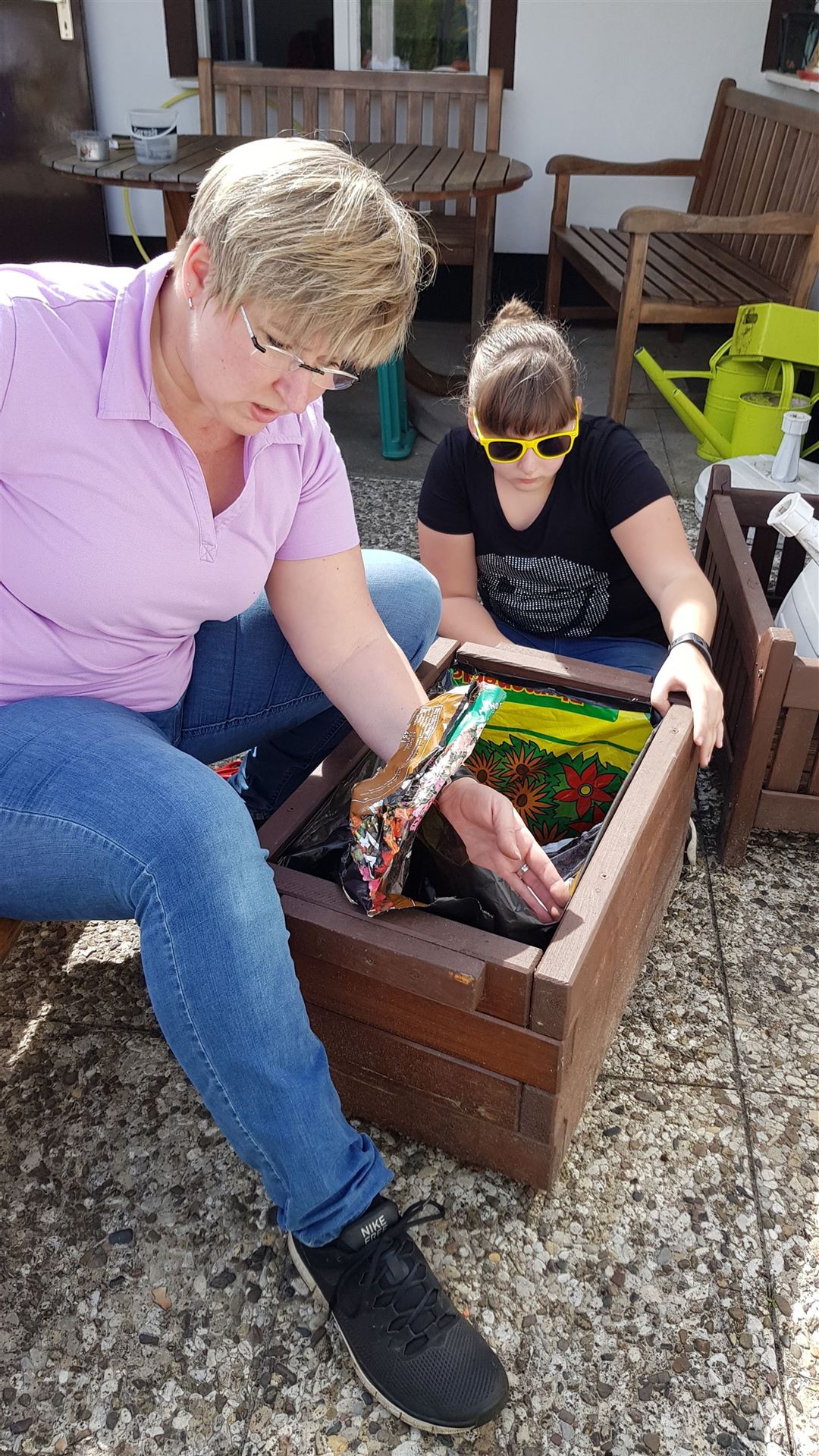 Nun mussten noch die Blumenkübel mit Folie ausgelegt und mit Erde gefüllt werden.