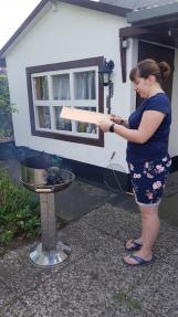 Nach einer kurzen Internetrecherche versuchte Claudia es mit angezündetem Kaffeepulver. Dieser verbreitete zwar einen schönen Geruch, aber den mochten die Bienen auch, denn sie verschwanden nicht wirklich.