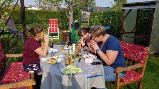 Nun fingen die Köpfe an zu rauchen, was man denn nun machen soll / darf. Einerseits braucht man die Bienen, damit sie die Blüten der Obstbäume bestäuben, andererseits will man sie aber nicht andauernd am Esstisch um sich haben.
