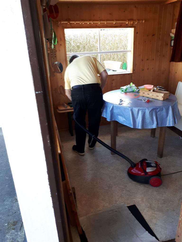 Nachdem die Gartenmöbel aus dem Haus gebracht waren, begann der Hausputz und das Wasser wurde angestellt.