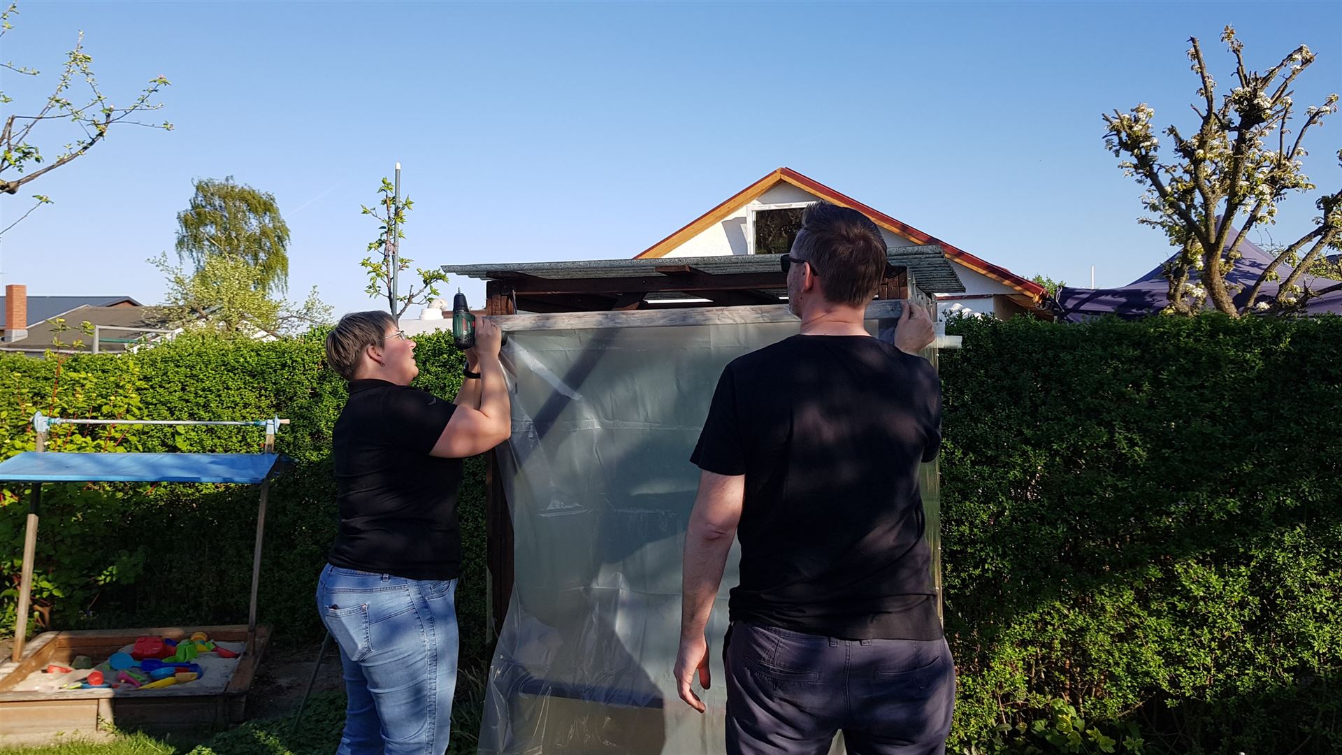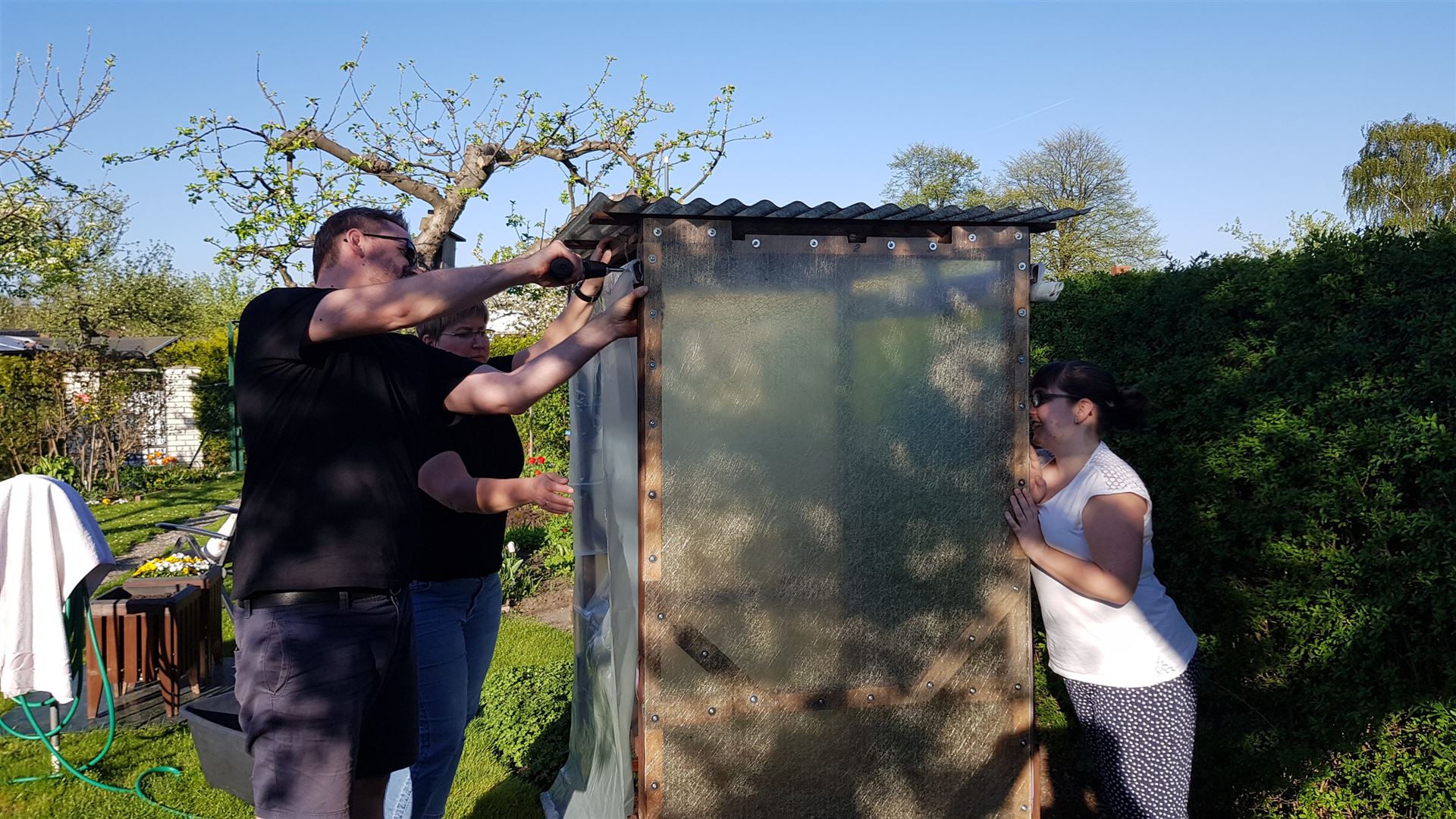 Nun galt es noch das Tomatenhaus aufzubauen.