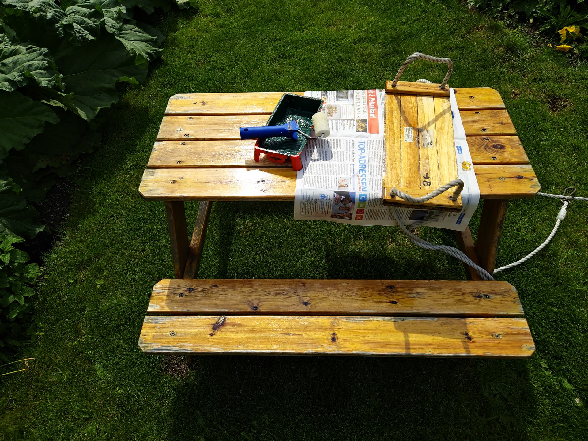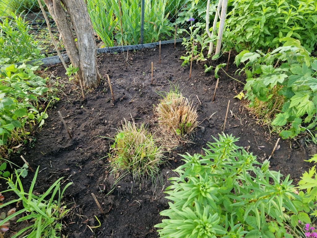 Regina und Claudia haben in den letzten Wochen einiges an Energie in die Beseitigung des Gierschs gesteckt. Um den Zustand des Giersch-freien Gartens zu erhalten werden dieses Jahr verschiedene Methoden ausprobiert.