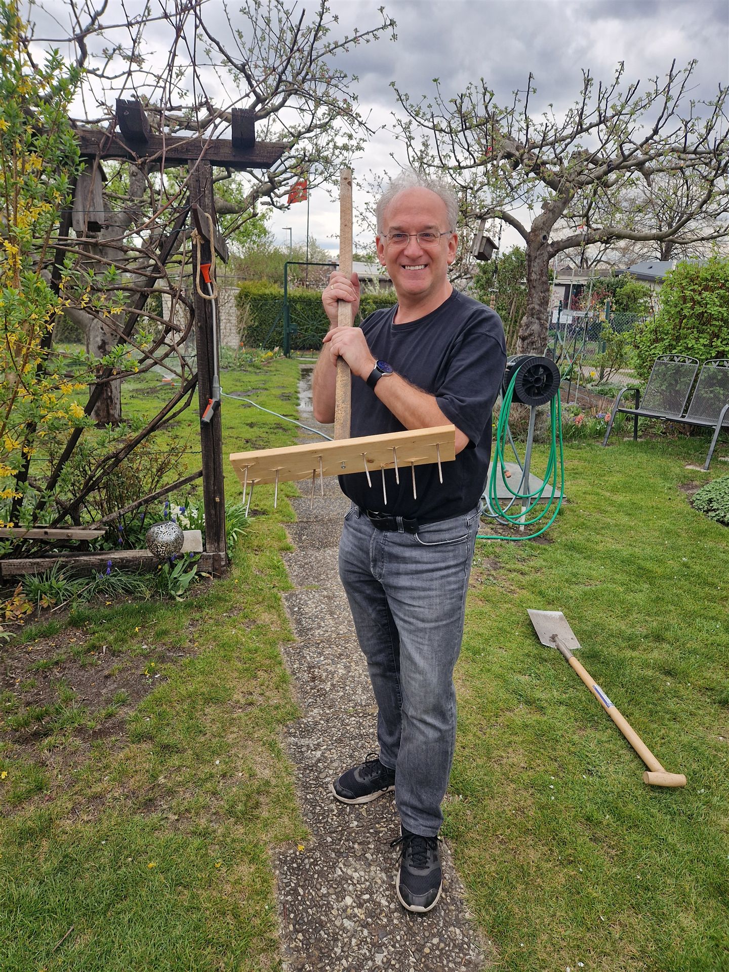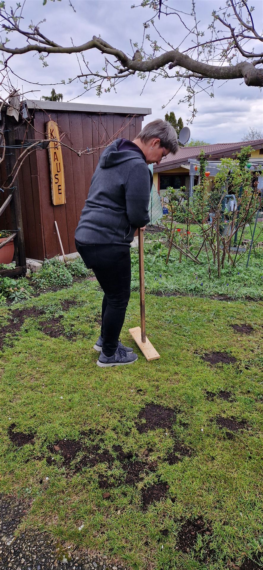 Nachdem die Nägel eingeschlagen waren, wurde noch ein Stil angeschraubt und los ging es.