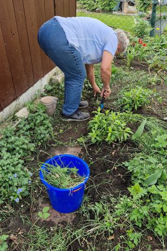 Regina kümmerte sich um die Schönheit des Gartens und versucht täglich das Unkraut zu eliminieren.