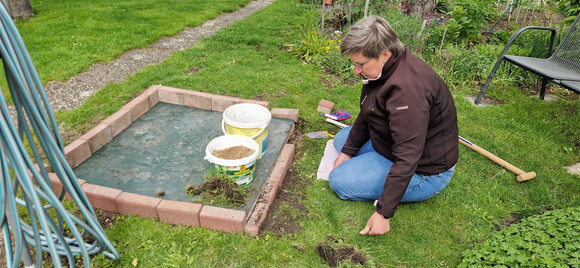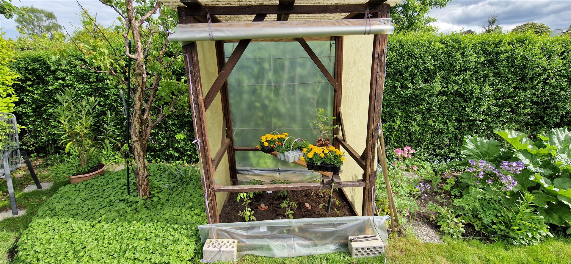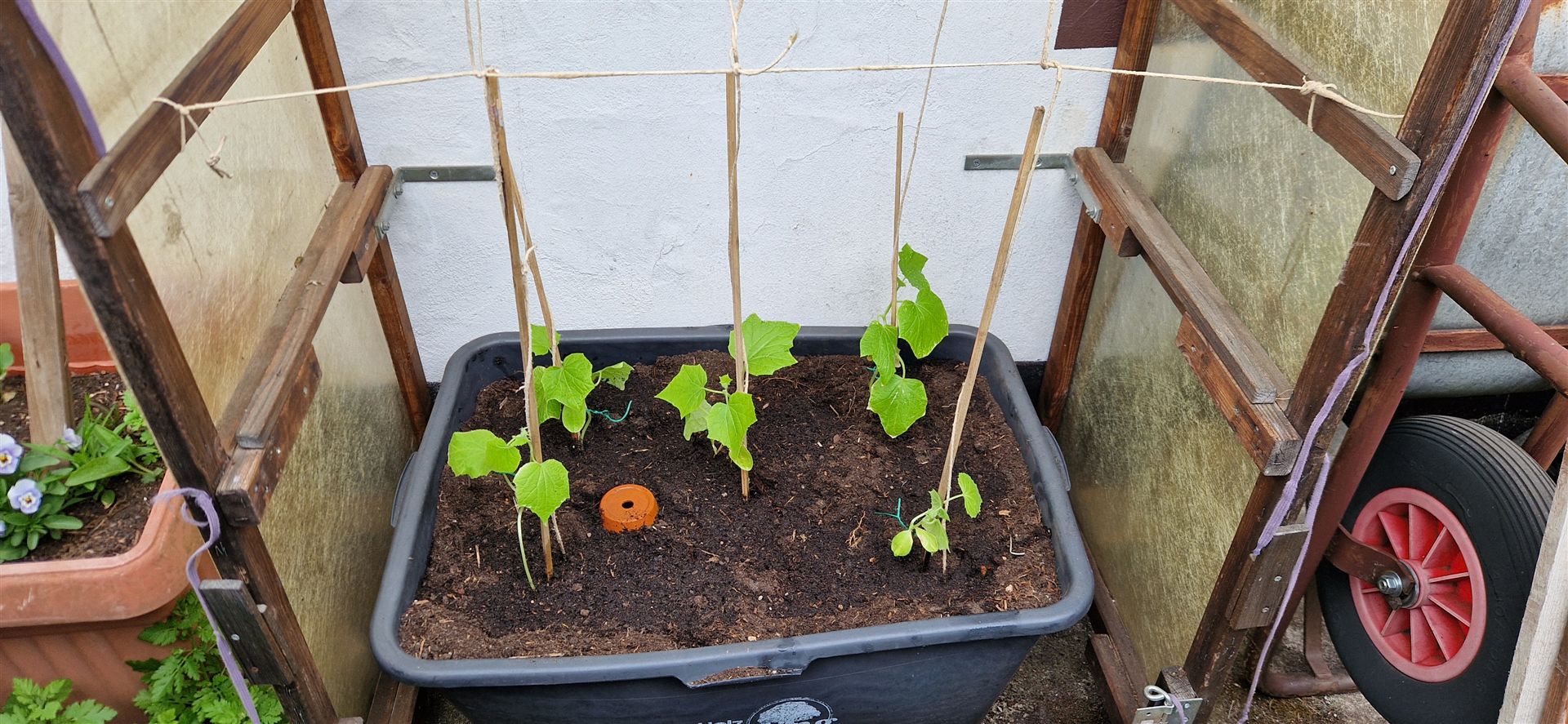 Die ersten Vorarbeiten für die Rankenhilfe der Kürbisse wurden auch schon getätigt.