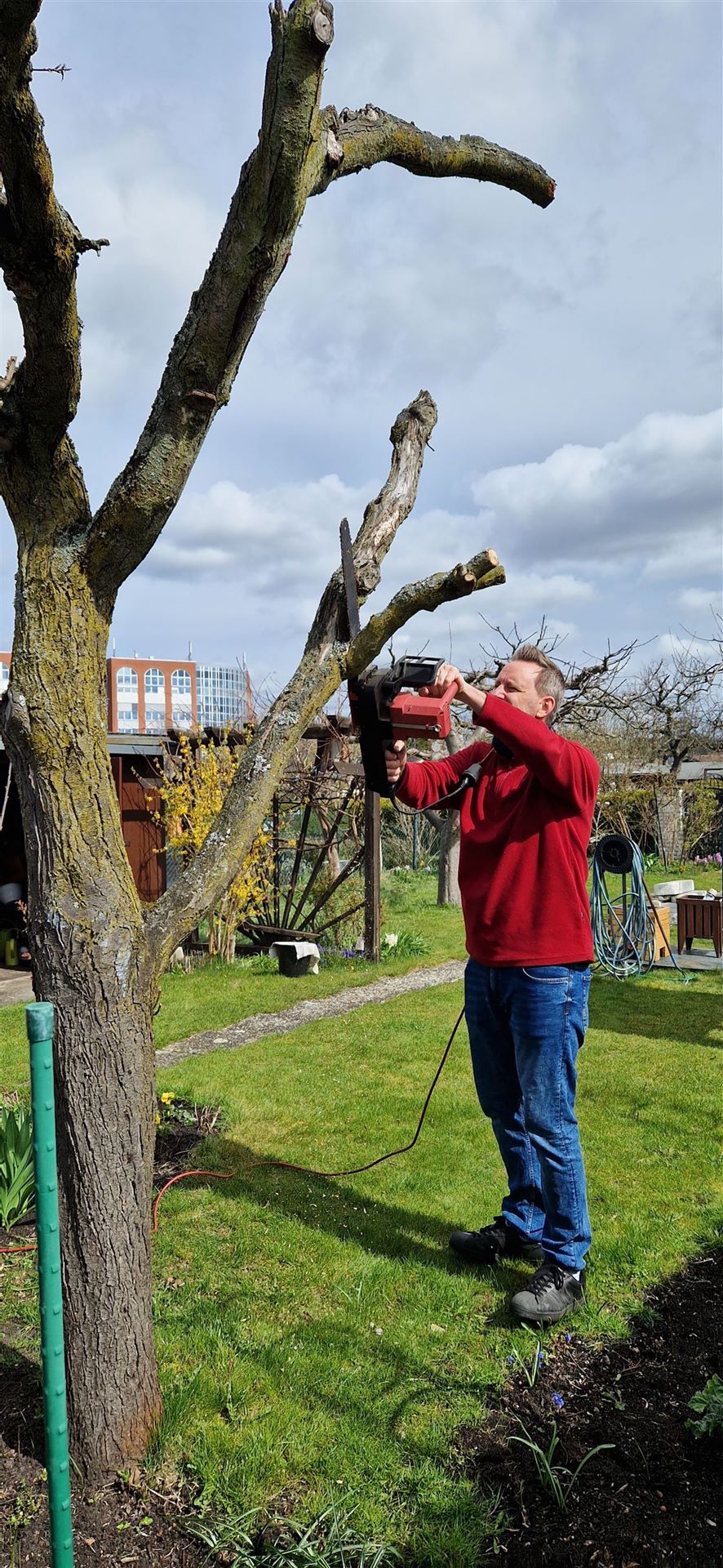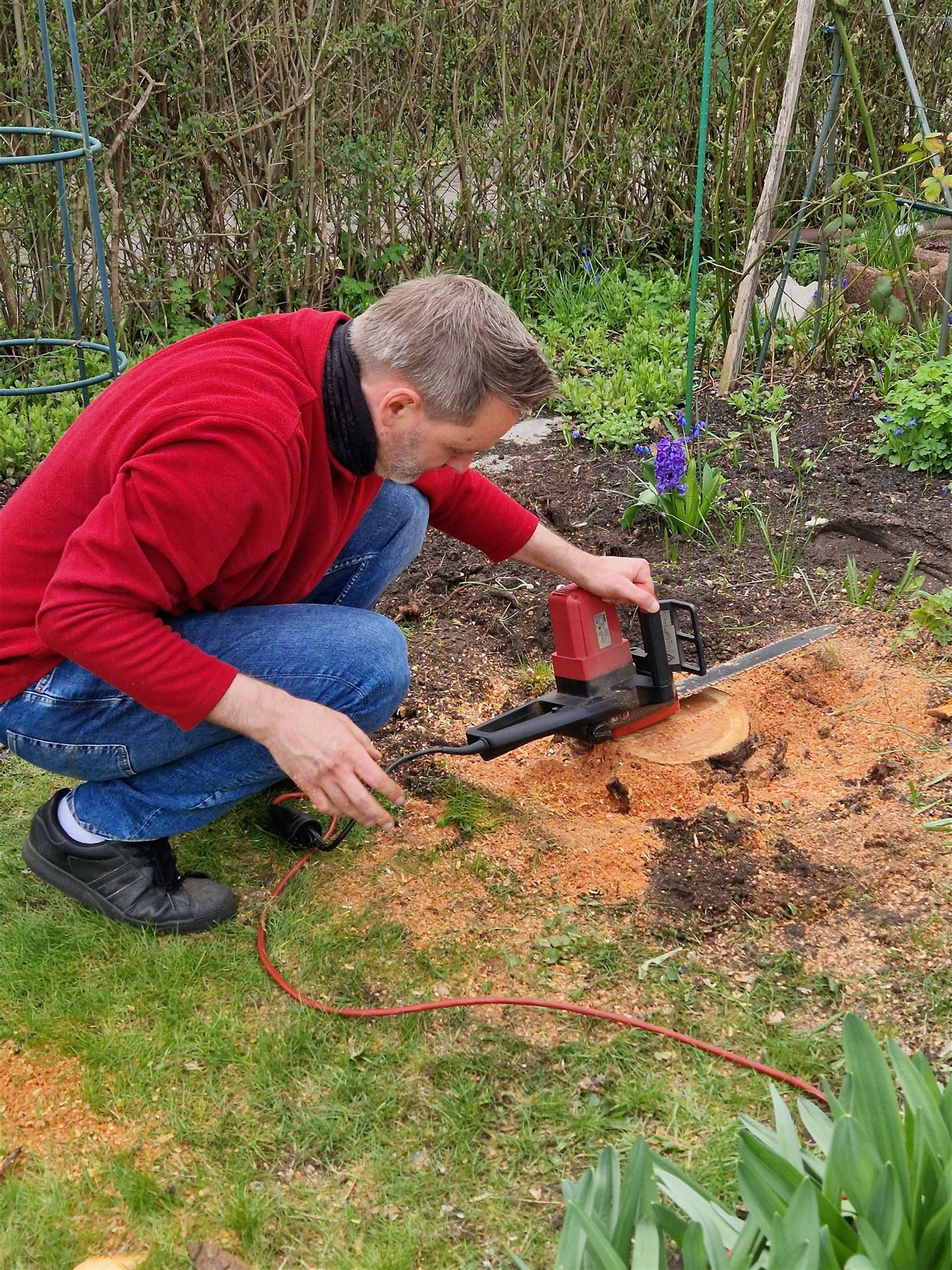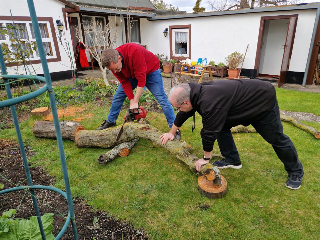 Vielleicht werden einige schöne Teile des Stammes als Zierde den Garten weiter schmücken. Das ist noch nicht entschieden.