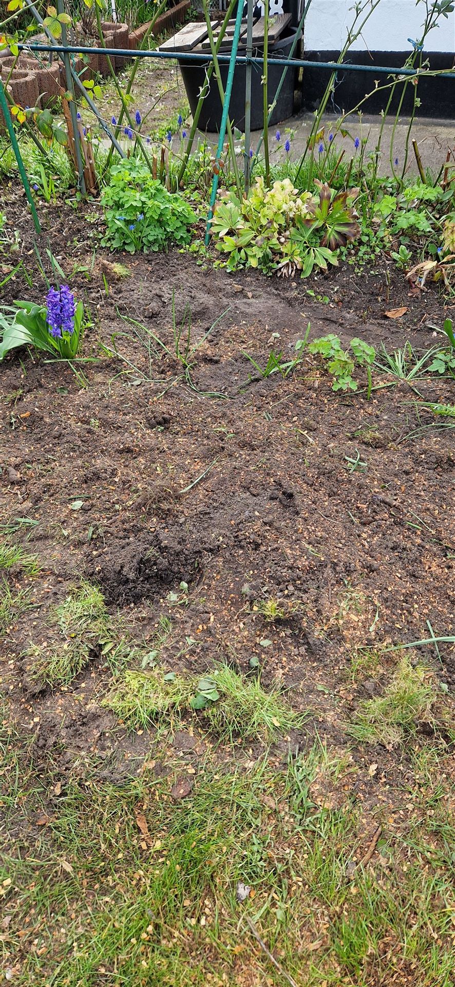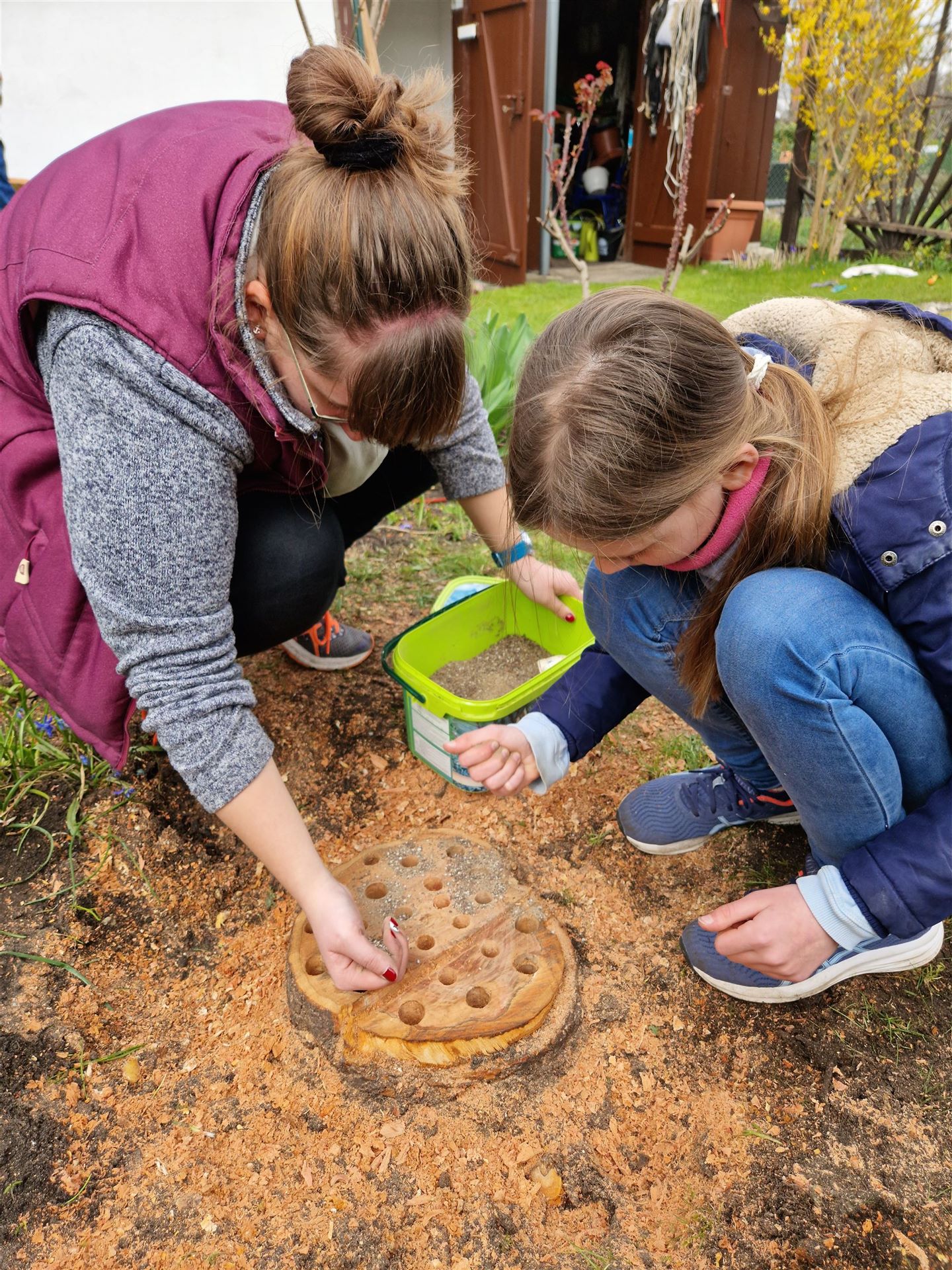 Anna und Henrike säuberten die Löcher und füllten sie mit Schnellkomposter und bedeckten alles mit Erde.