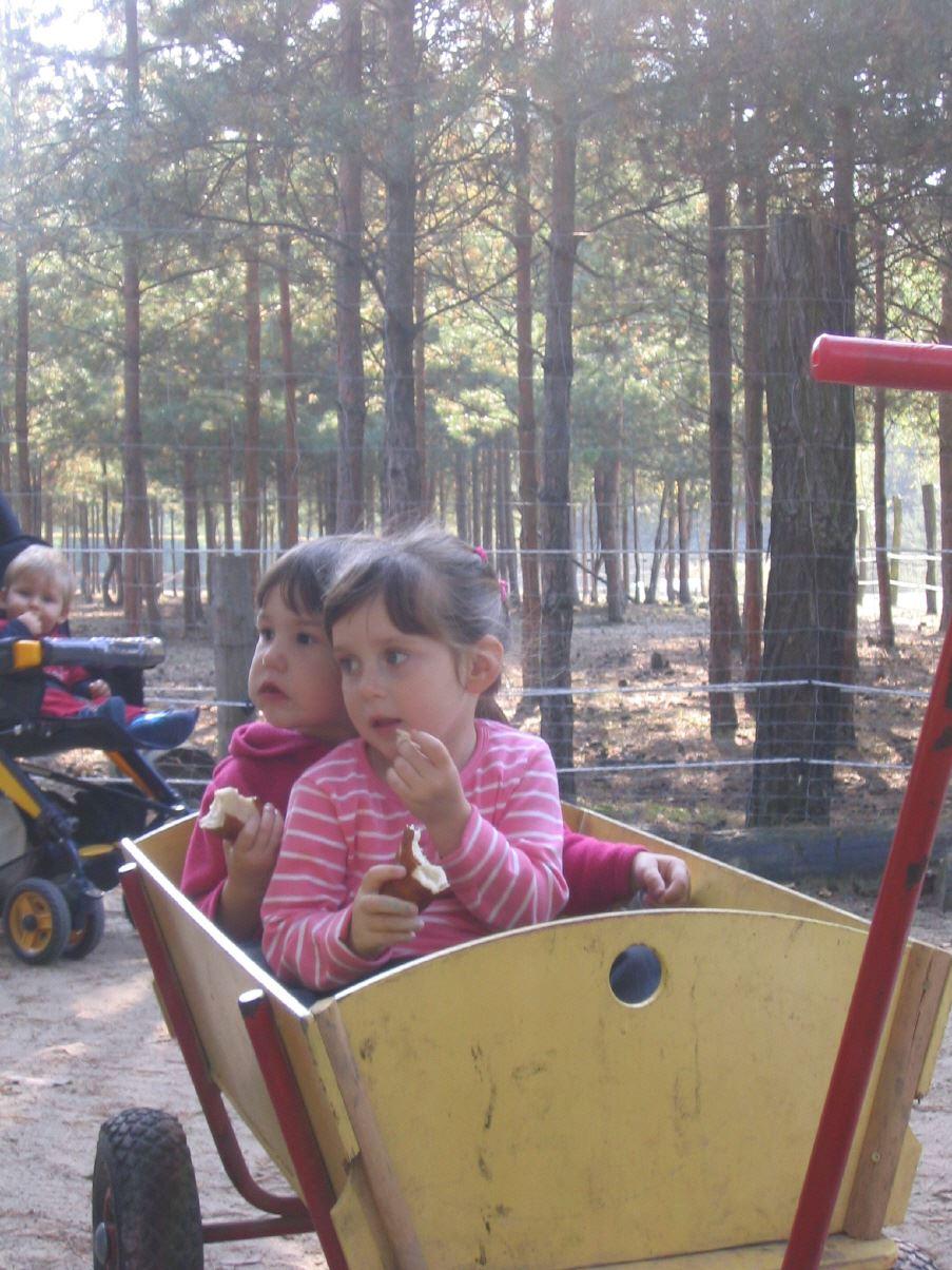 Am Ende eines sehr schönen Ausfluges zogen dann Lynn und Leonie Henrike im Bollerwagen zum Ausgang. |