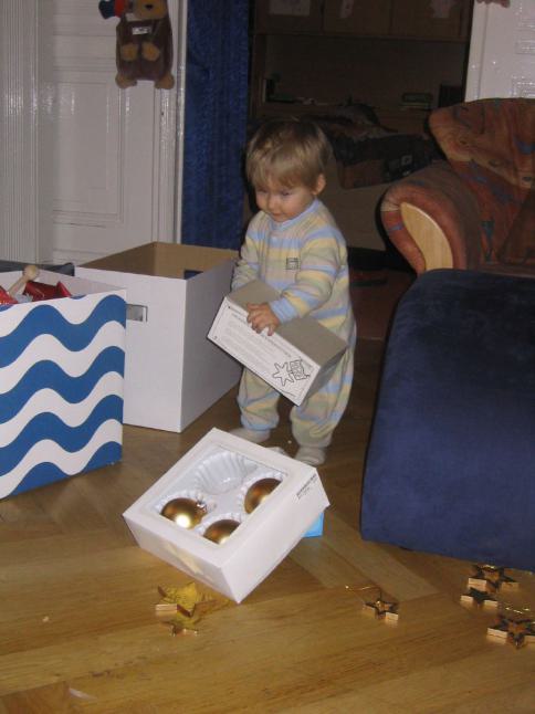Und Leonie suchte schon mal die passenden Kugeln heraus.