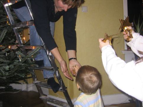 Alles wurde dann zum Baum getragen und weitergegeben, so dass es richtig plaziert aufgehangen werden konnte.