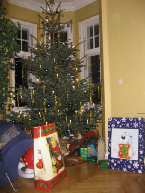 Als wir dann zu Hause ankamen, konnte man schon von der Straße aus sehen, dass das Christkind dagewesen war, denn die Lichter am Weihnachtbaum waren entzündet.