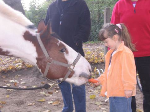 Leonie fand mehr Interesse an den Pferden und freute sich Monty füttern zu können.