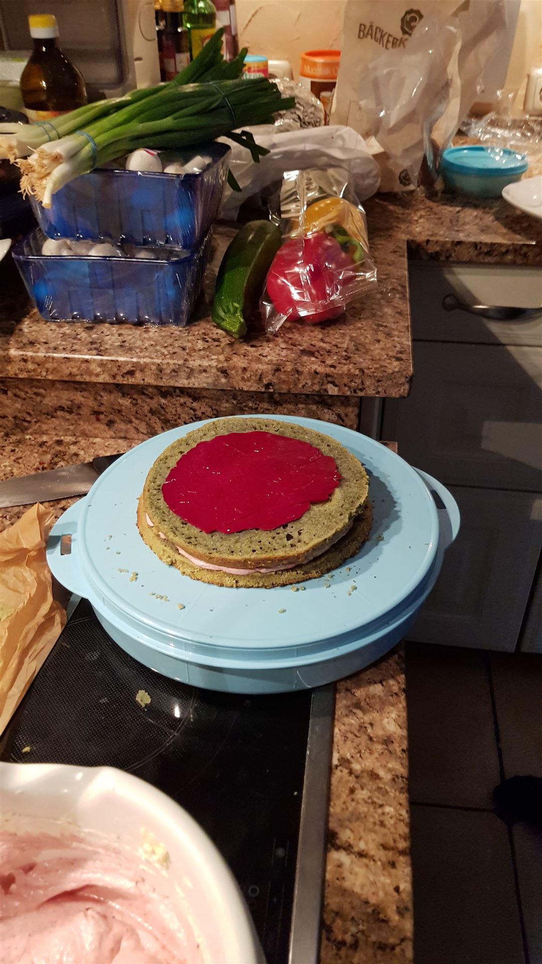 Langsam nahm die Torte Gestalt an und sie wurde bestimmt rechtzeitig fertig.