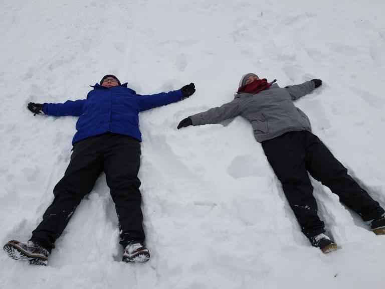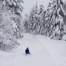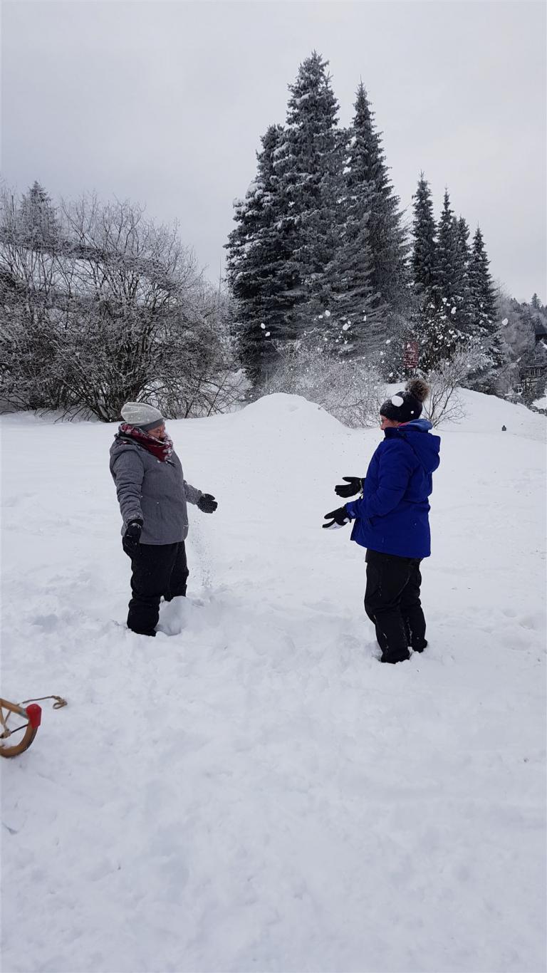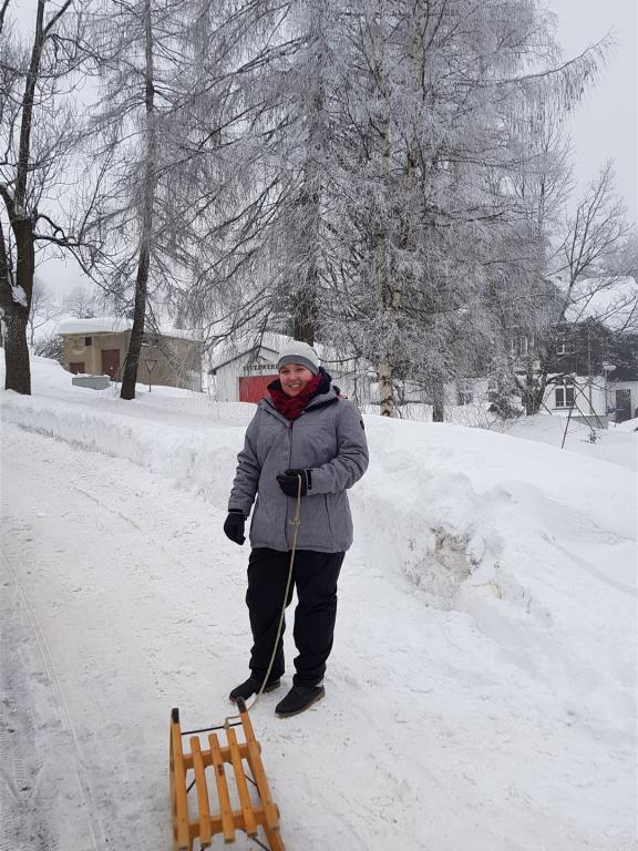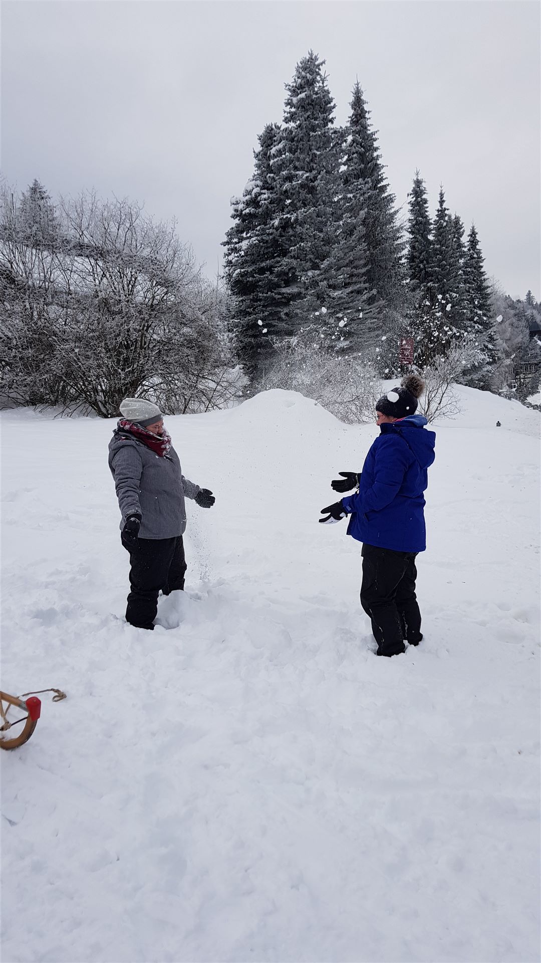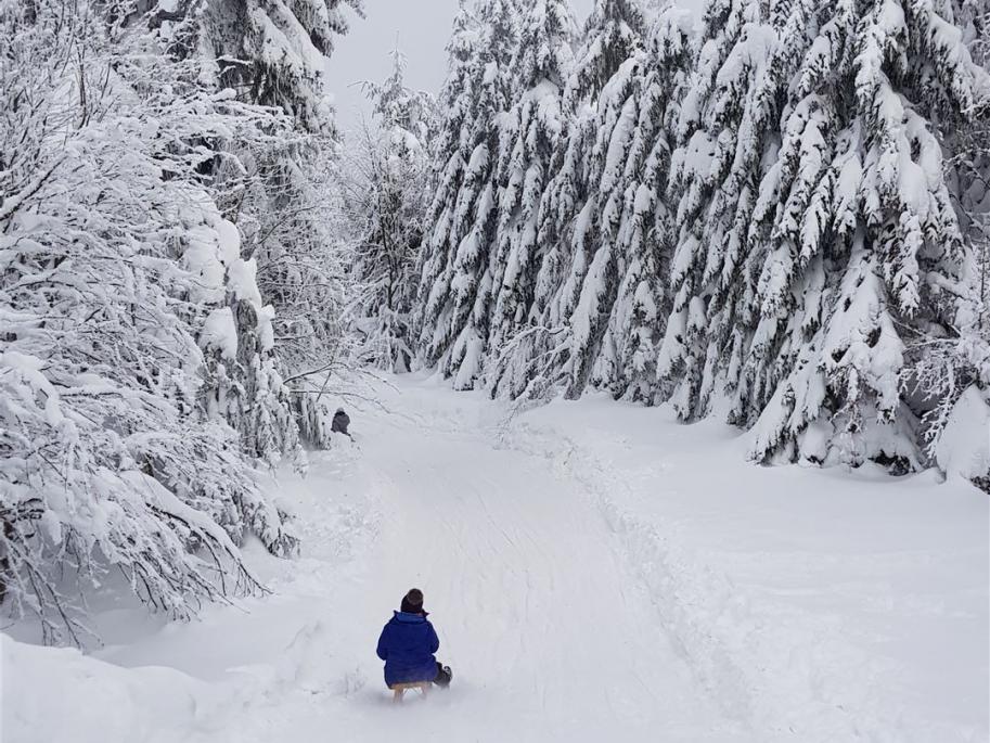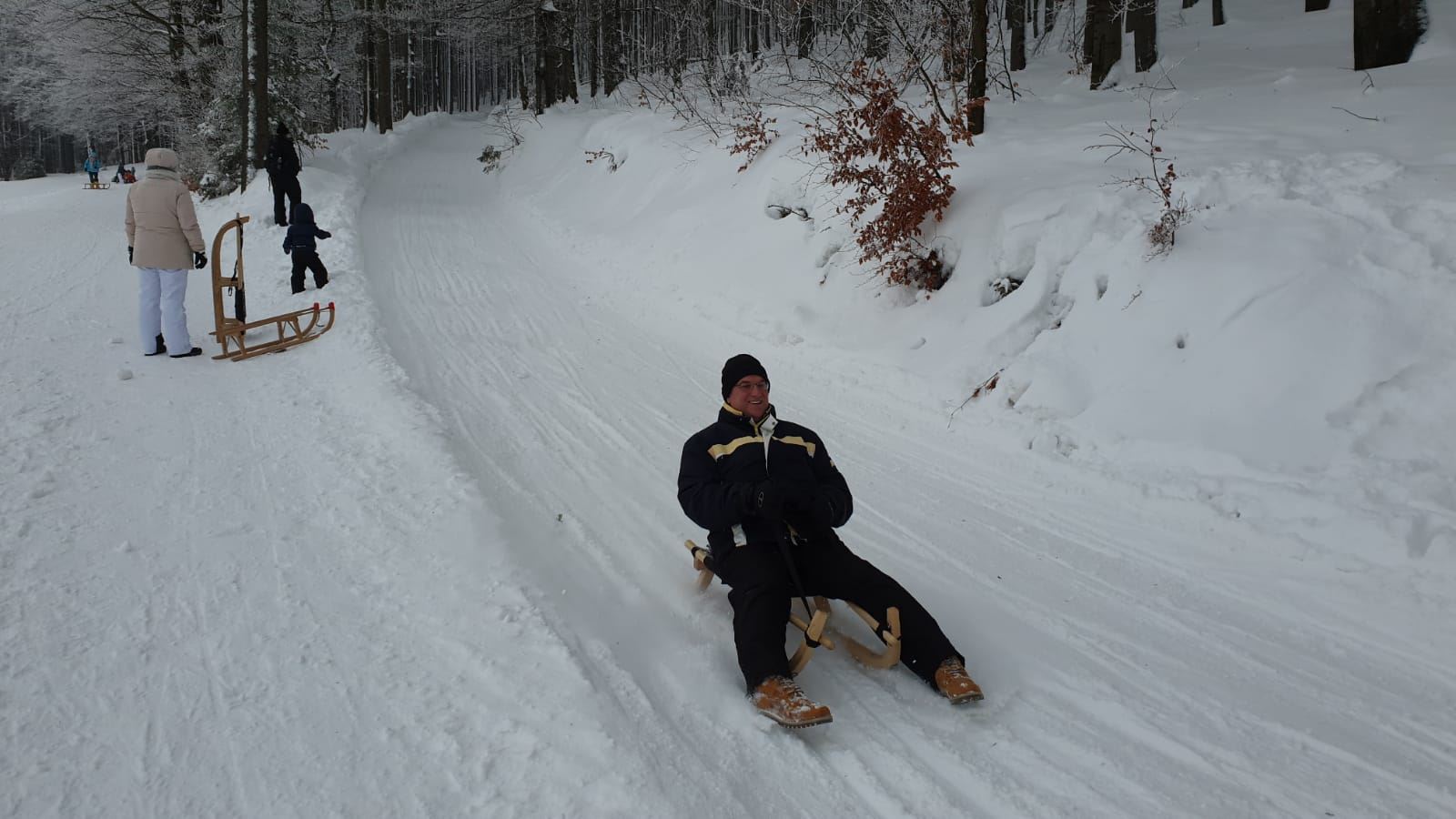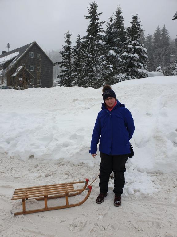 Wir packten unsere Schlitten aus und gingen Richtung Berg, da dort eine tolle Rodelbahn sein sollte.
