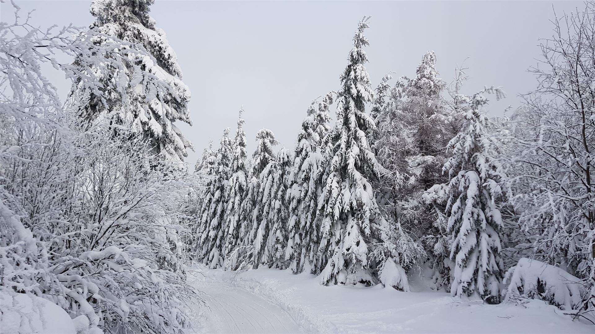 Je südlicher wir kamen, desto weißer wurde es auf den Wiesen und Wäldern.