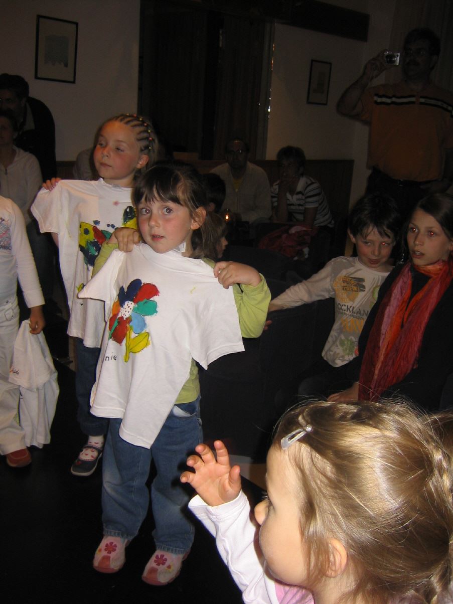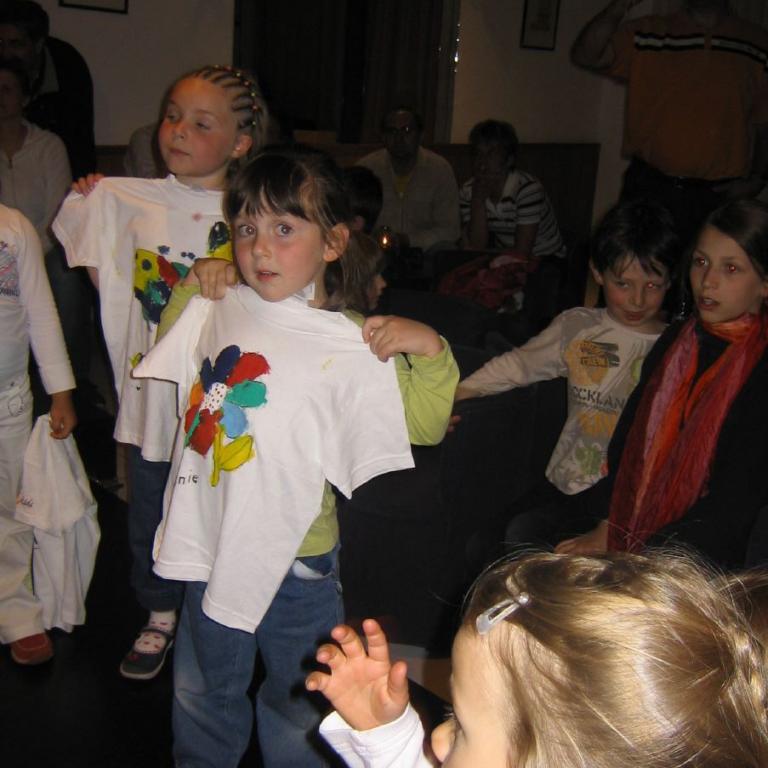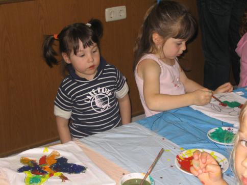 Lynn und Leonie zeigen sich gleich wieder kreativ und bemalen T-Shirts.
