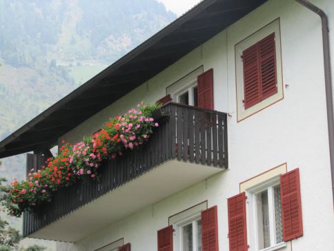 Und hier ein wolkenbehangener Blick vom anderen Balkon Richtung Reschenpass.