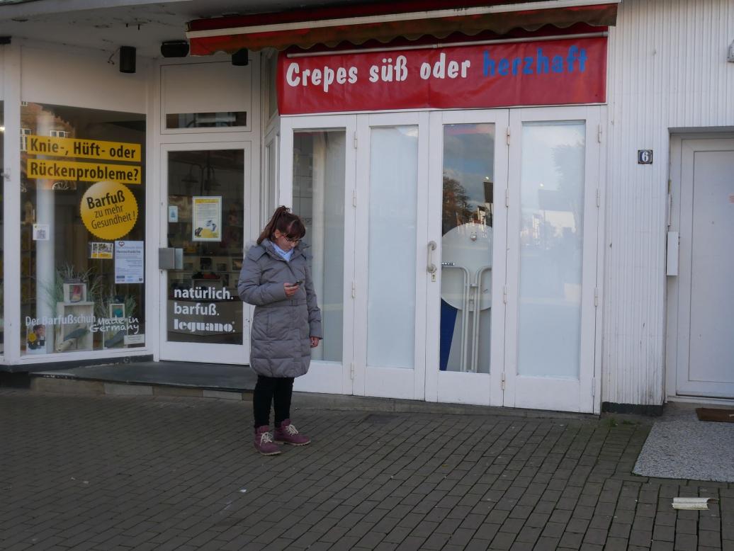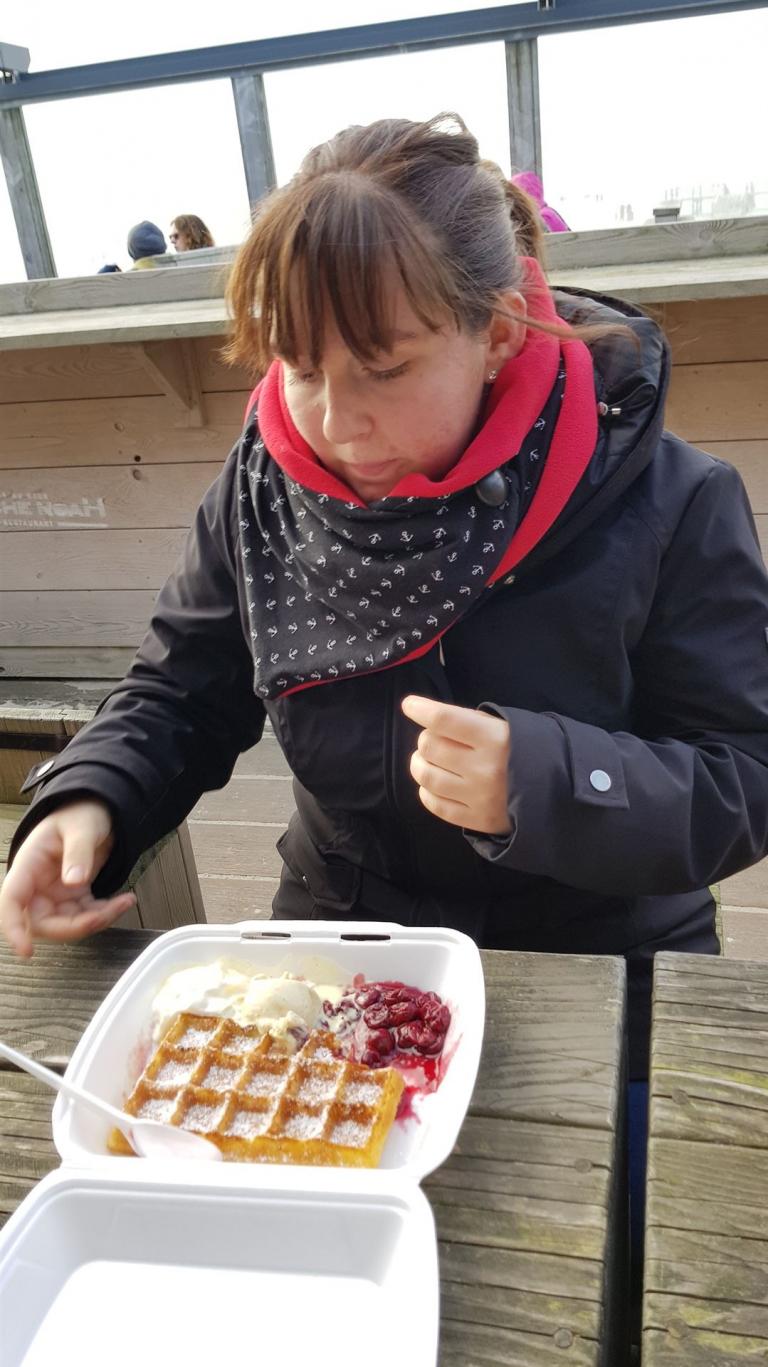 Anschließend stärkte sich Henrike mit einem Crêpes. Leonie und Claudia zogen eine Waffel vor, nur Andreas aß die Knusperstange, die Claudia morgens vom Bäcker mitgebracht hatte.
