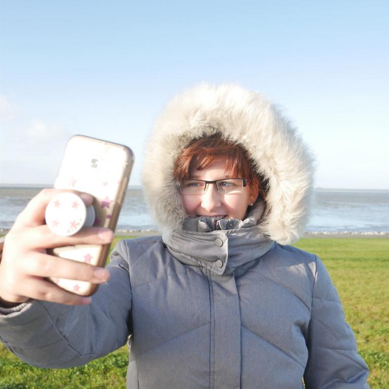 Etwas unsicher wegen des Sturmes fuhr sie dann zum Bäcker Brötchen holen.