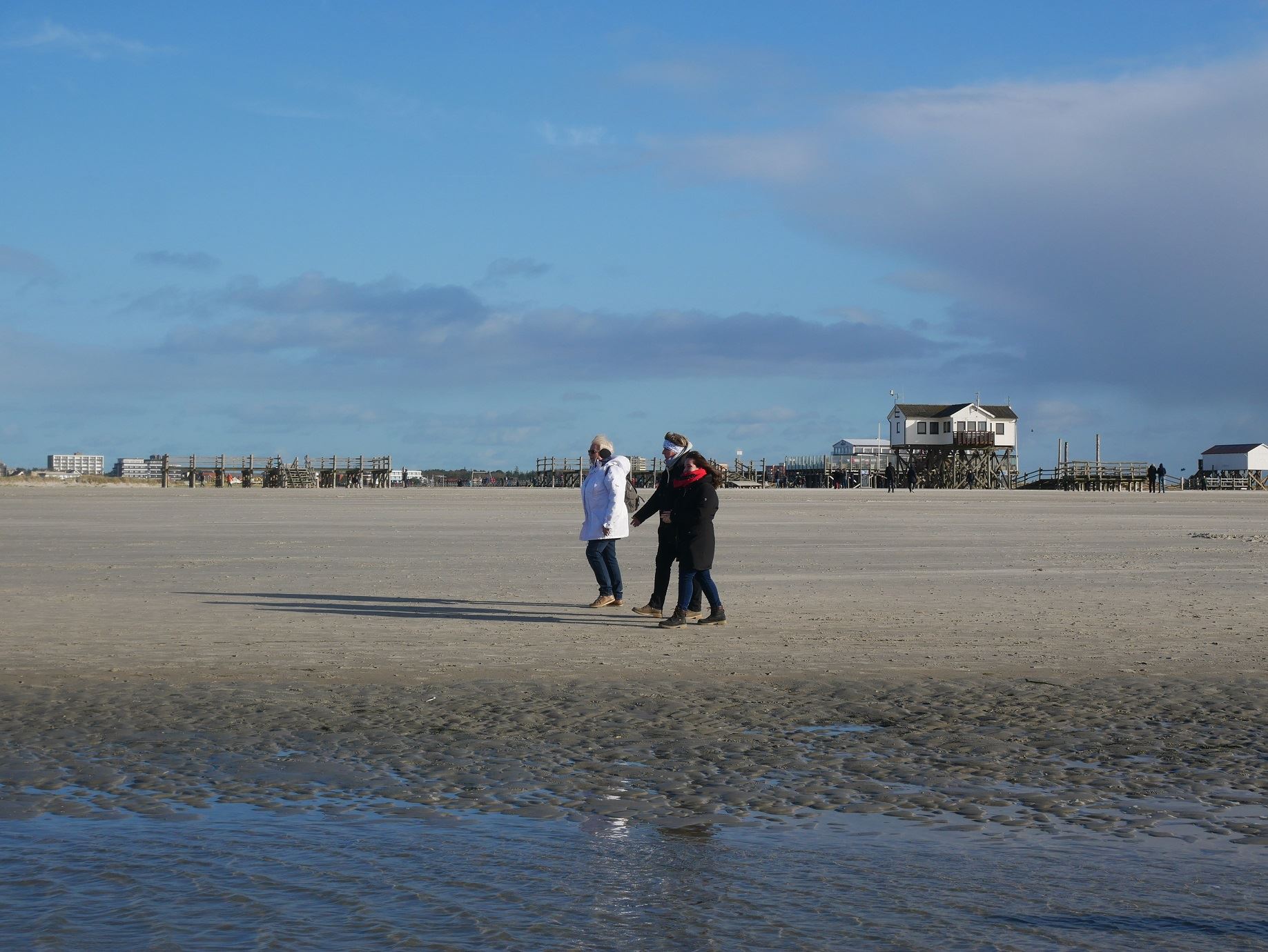 Leonie, Molly und Claudia brachen zu einem ausführlichen Strandspaziergang auf, da sie sich nicht wie Henrike, Guido und Andreas trauten, durch den Priel direkt zum Meer zu gehen.