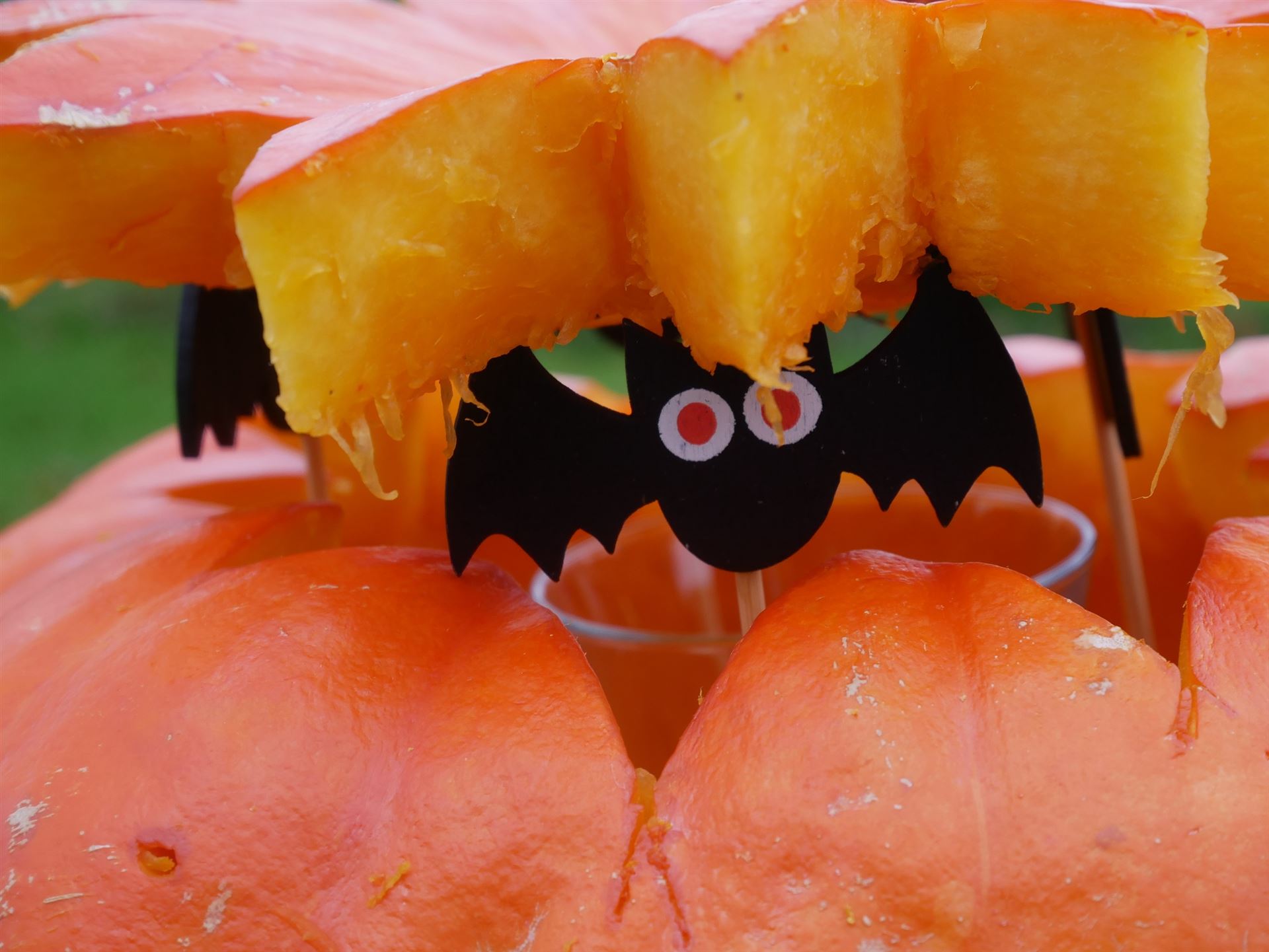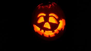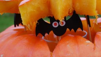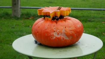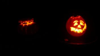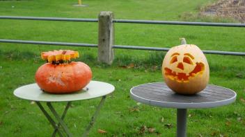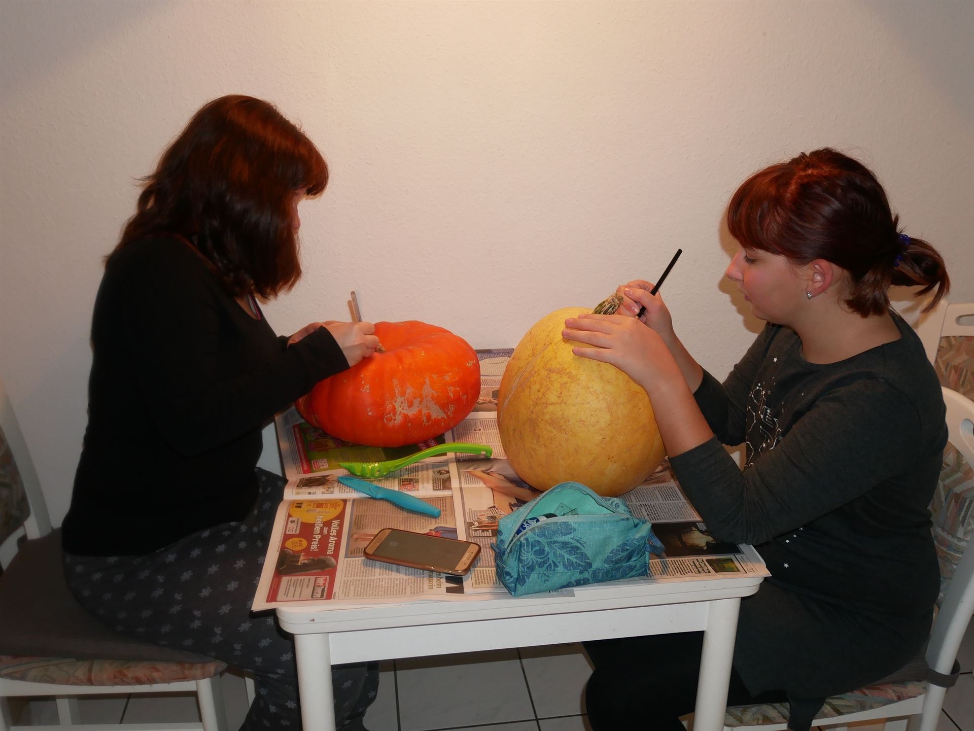 Gestärkt machten sich Henrike und Leonie dran, zwei Kürbisse Halloween-fein zu machen.