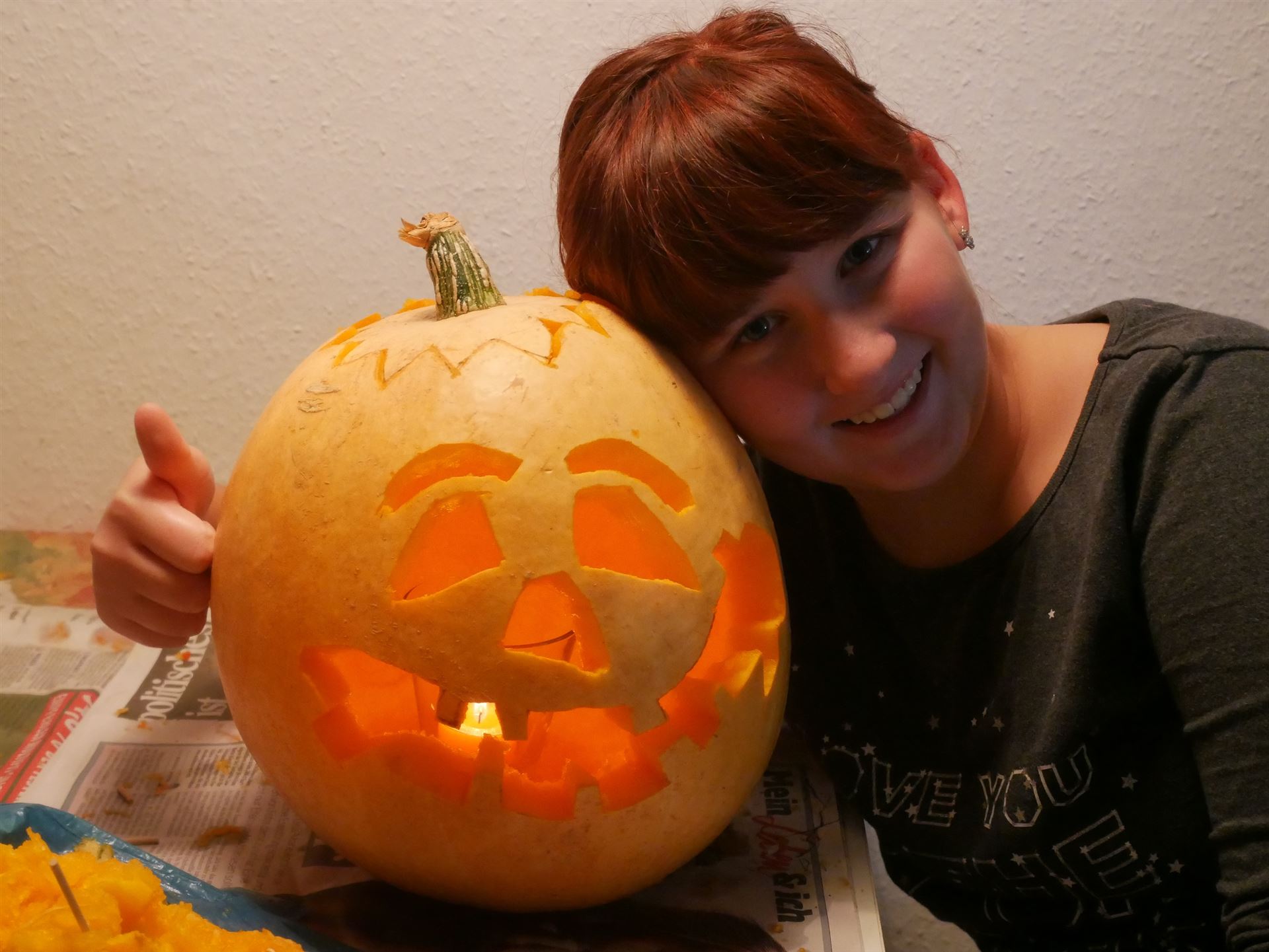 Diesen Brauch kannte hier kaum jemand und wir hatten nach sehr langer Suche die letzten zwei Kürbisse weit und breit gekauft.