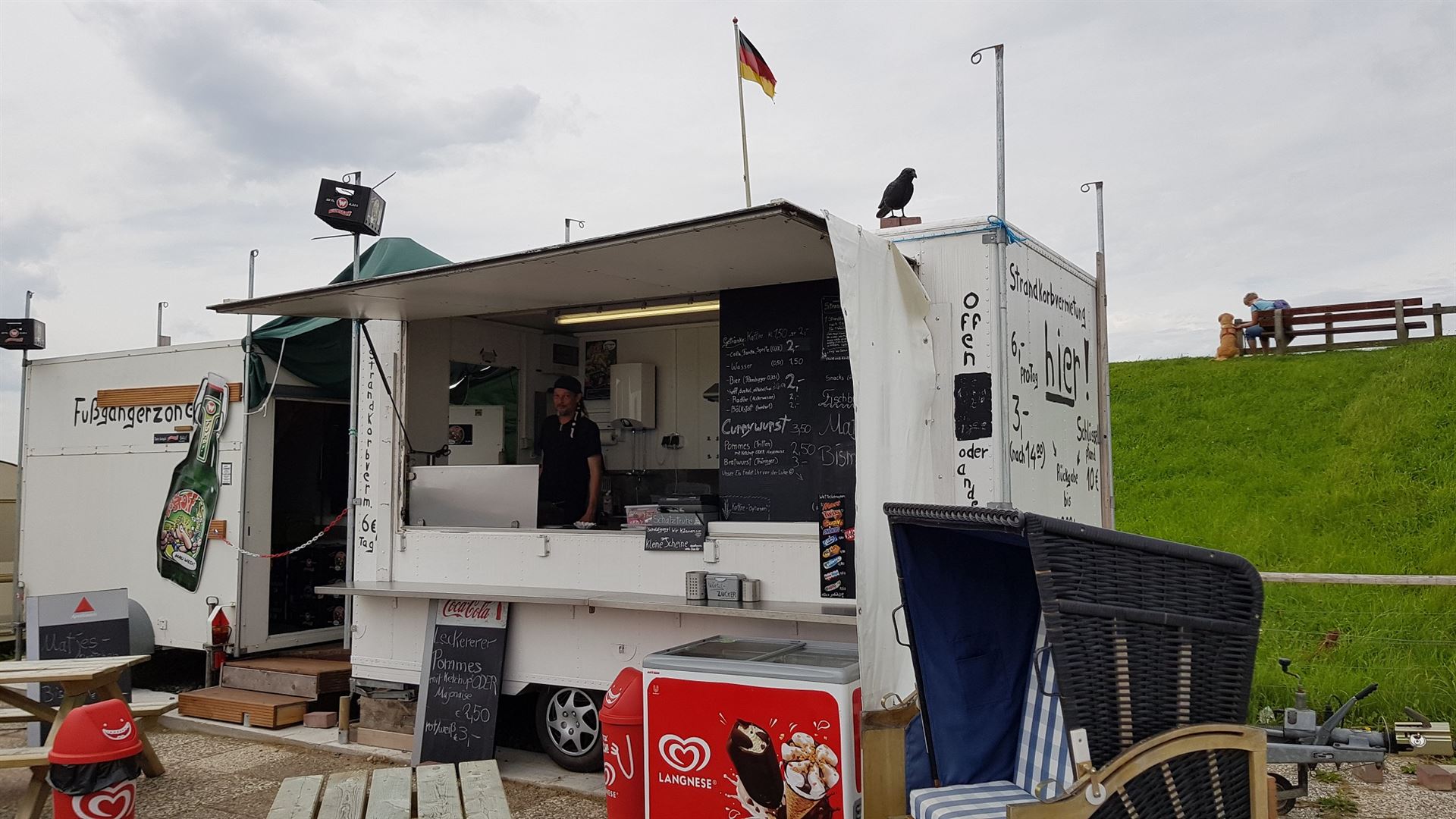 Es gab wieder eine Verkaufshütte, die auch die vielen Strandkörbe vermietet.