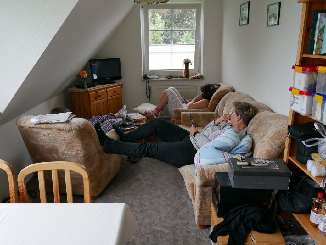 Anschließend gammelten wir etwas rum, räumten in der Wohnung auf und schauten Henrike beim Verfassen des ersten Urlaubblogs zu.