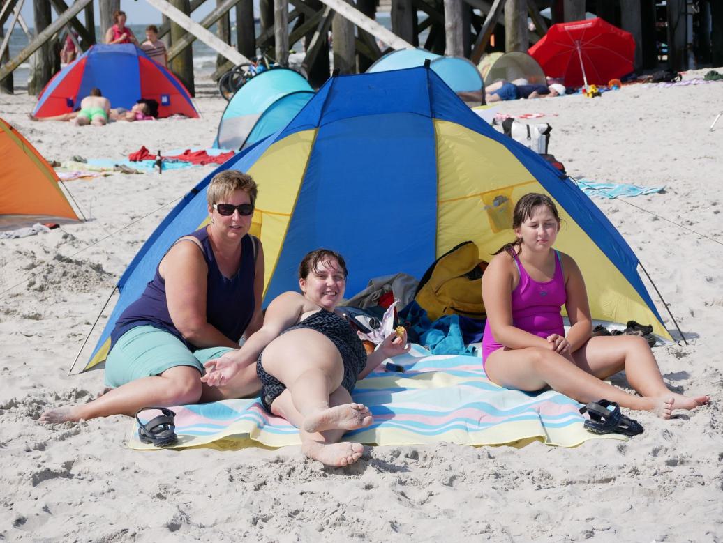 Da gerade Flut war, nahmen wir keinen Platz in der ersten Reihe ein, sondern bauten unser Strandzelt etwas weiter vom Wasser weg auf.