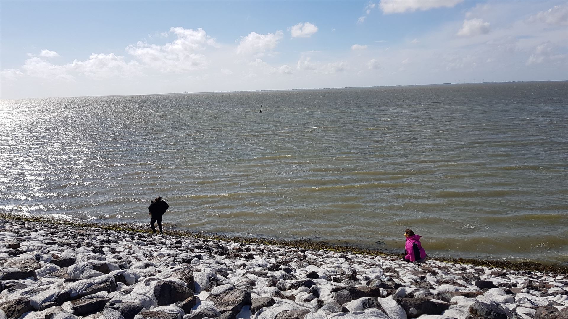 Da Henrike und Leonie das irgendwann langweilig fanden, schickte Claudia sie den Deich herunter zum Bernstein suchen.