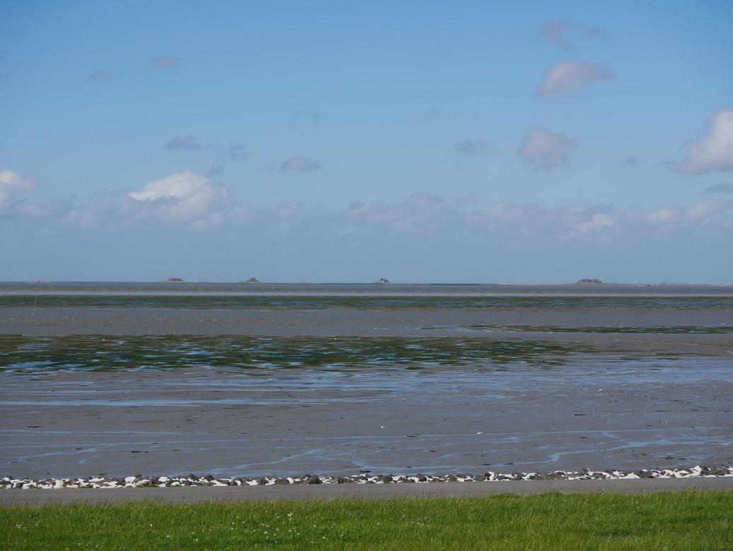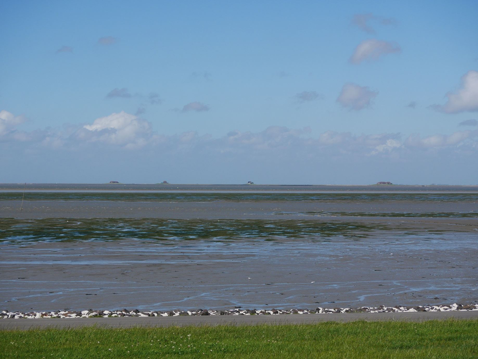 Da das Wasser gerade noch weg war, wanderten wir barfuß zum Priel.