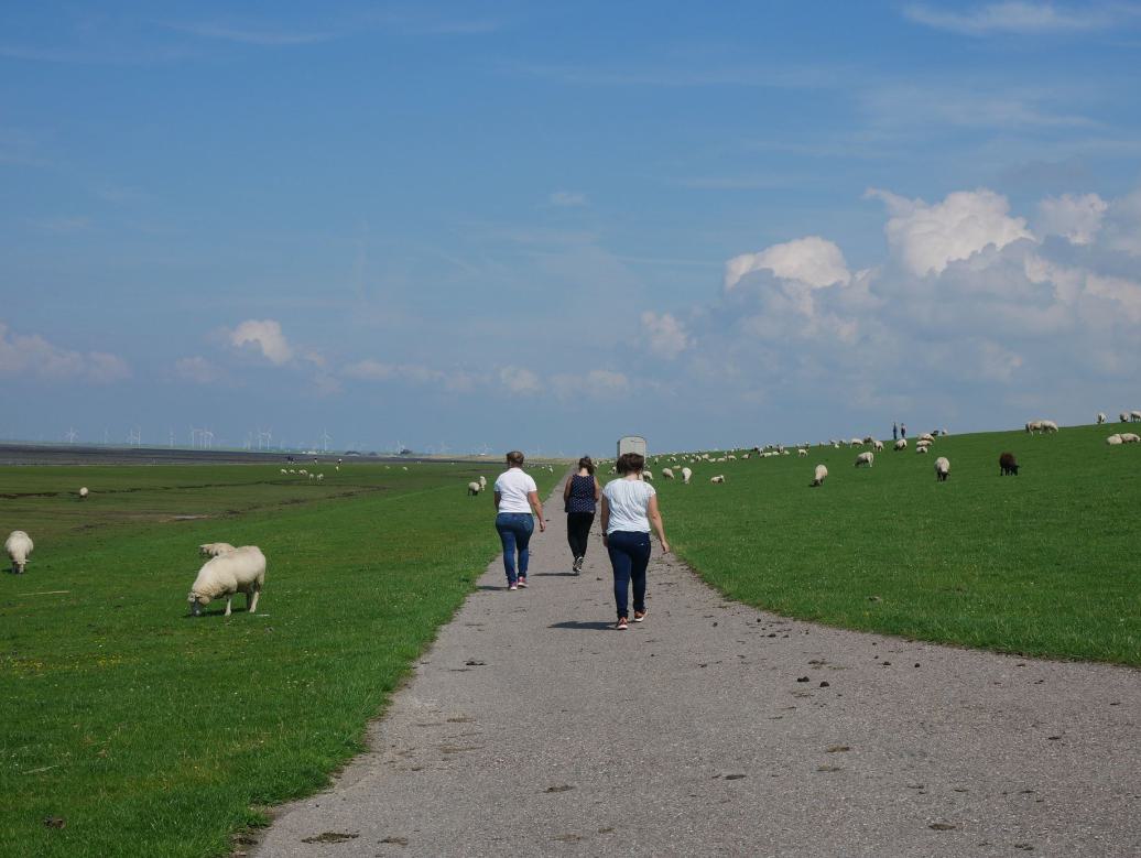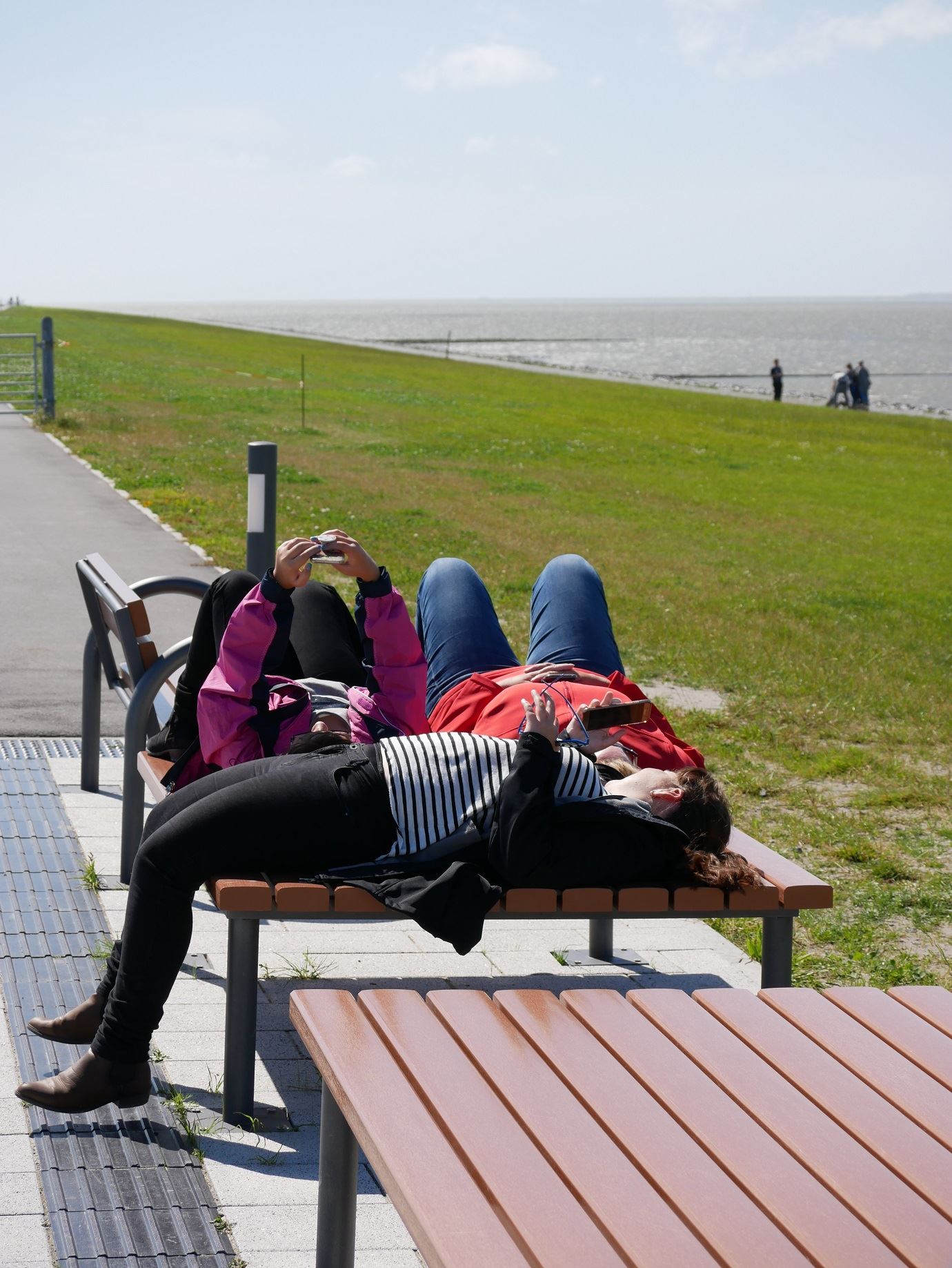 Obwohl wir von diesem lauschigen Platz gar nicht mehr aufstehen wollten, machten wir uns dann doch auf den Weg, den neuen Deich zu Fuß zu erkunden.