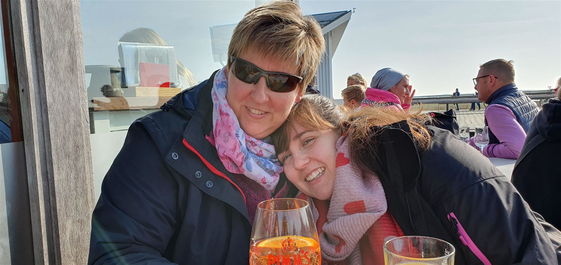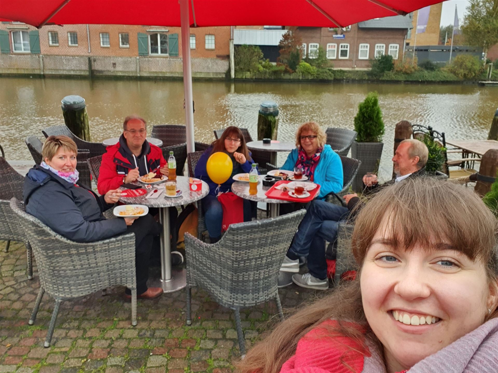 Dort wurden wir schon erwartet und feierten bei Wind mit Prosecco, Muffins und anderen Süßigkeiten mit den Angestellten.