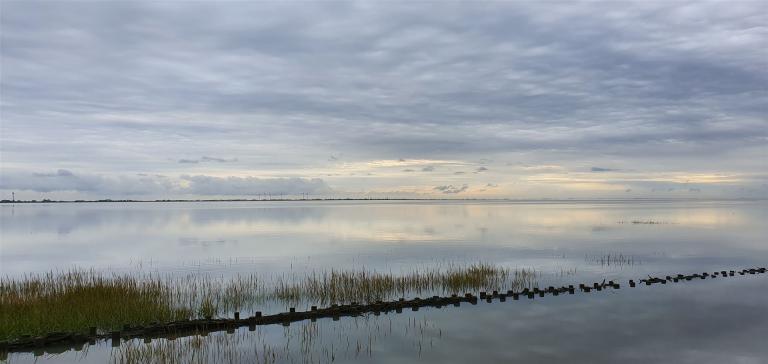 Wie es aussah, kann man dort zwar nicht am Wasser spazieren gehen, aber für einen tollen Sonnenuntergang merkten wir uns den Platz vor.