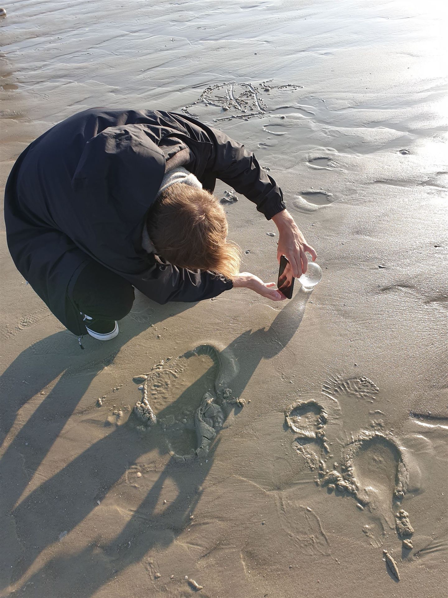 Inzwischen war auch das Strandgebührenhäuschen geschlossen, so dass wir gemütlich zum Wasser laufen konnten.