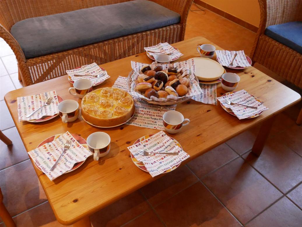 Wir aßen lecker Kuchen, tranken was und Henrike bekam Geschenke.