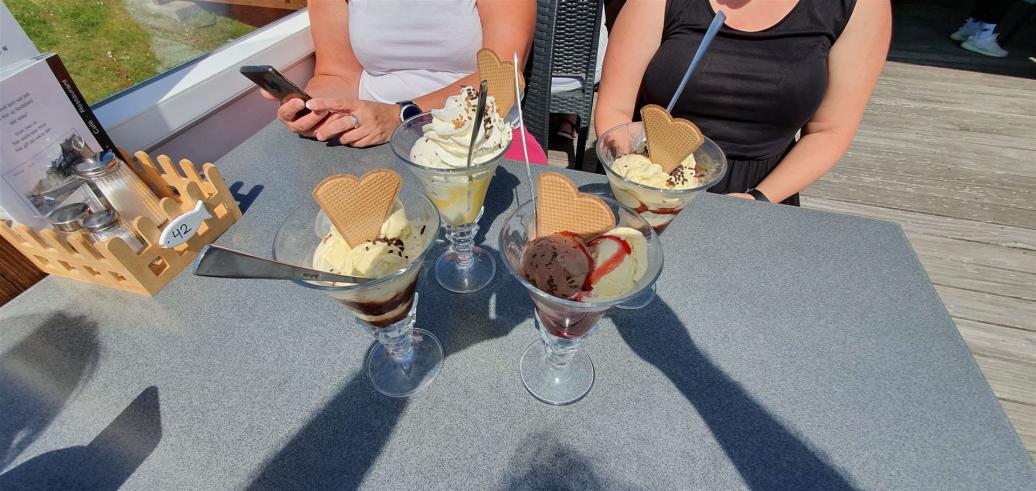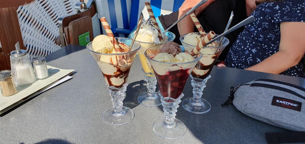 Wir aßen dann noch gemeinsam eine Portion Pommes und tranken ein Bier und fuhren dann weiter zum leckeren Eisladen.