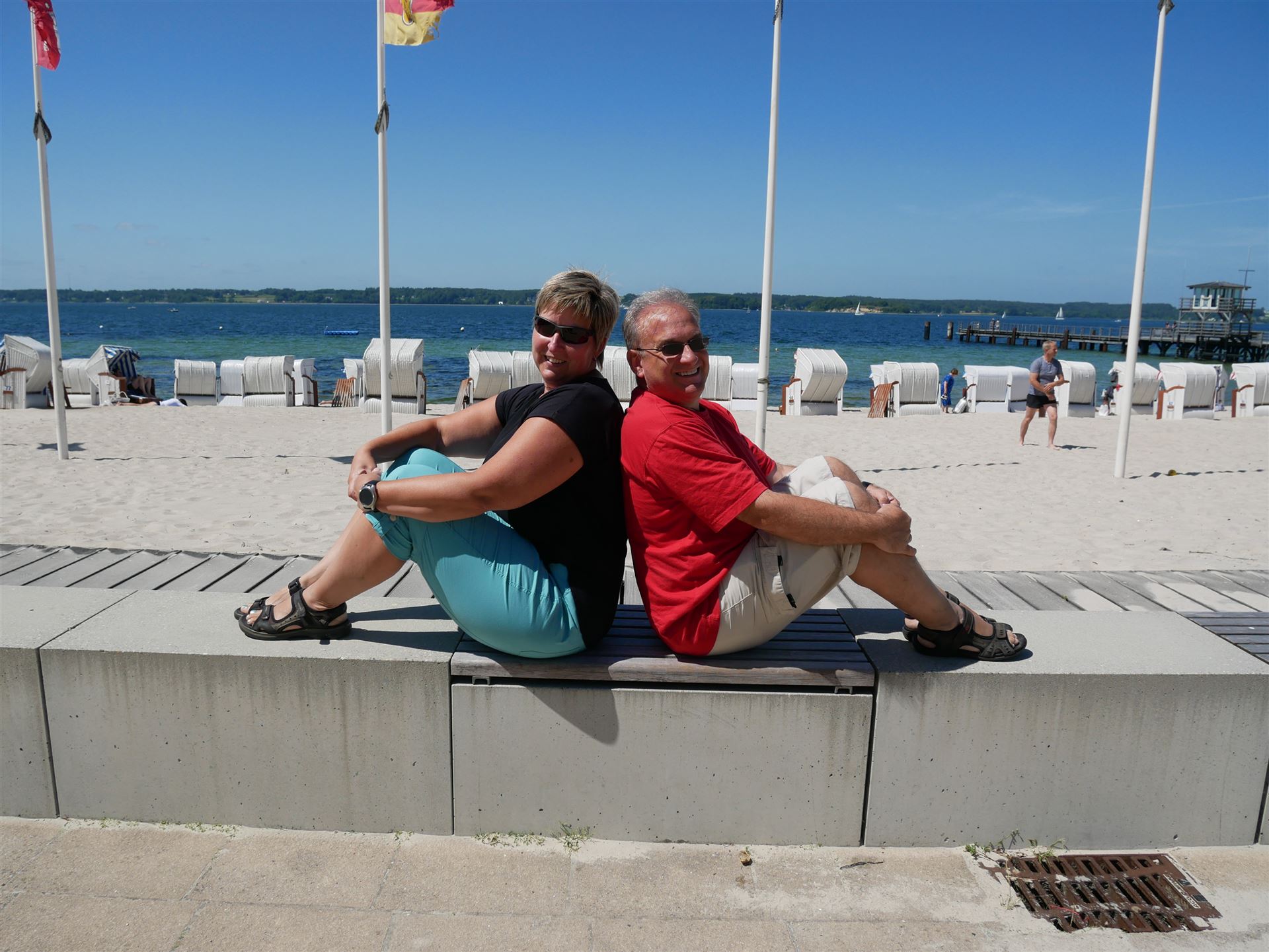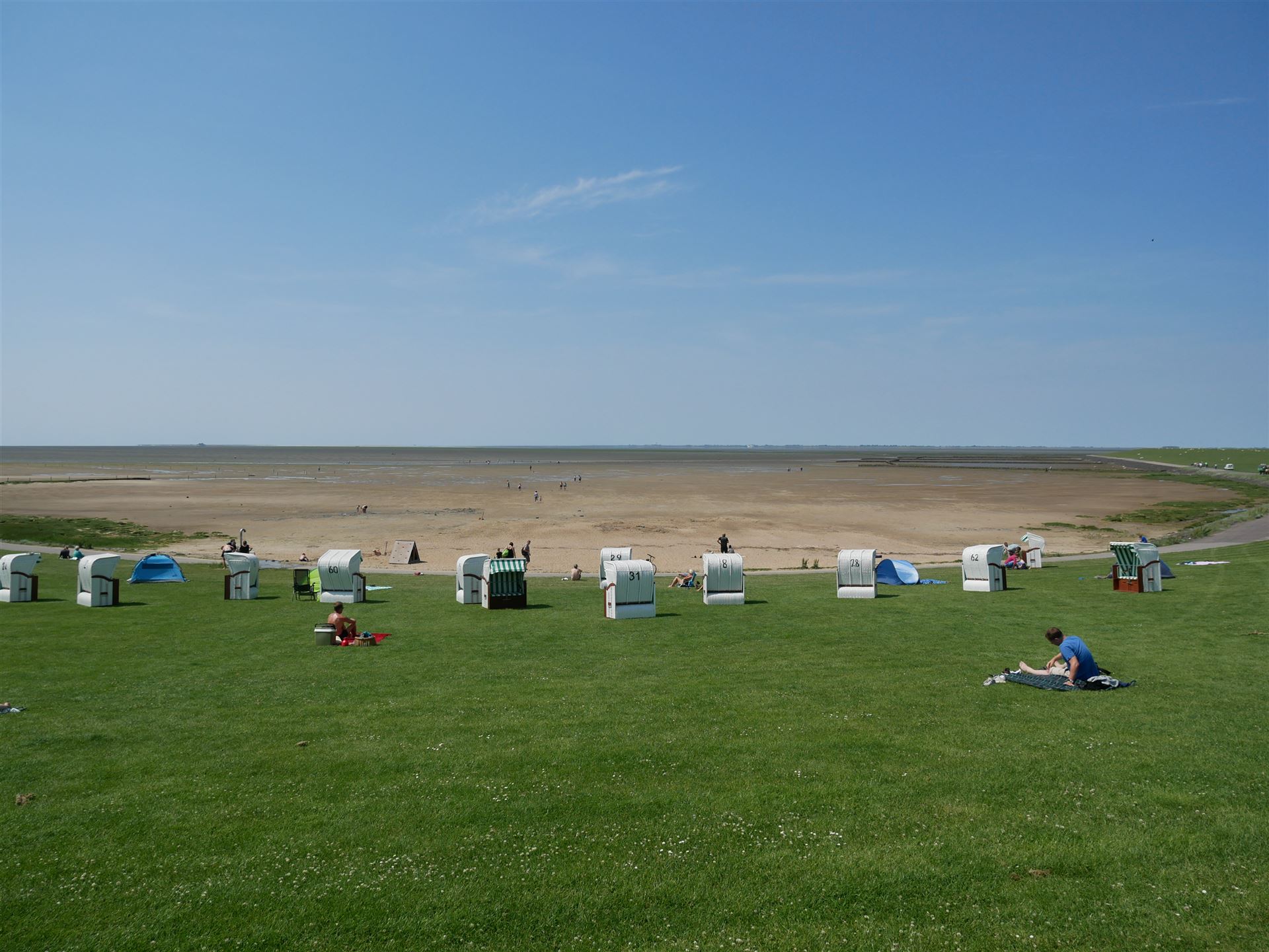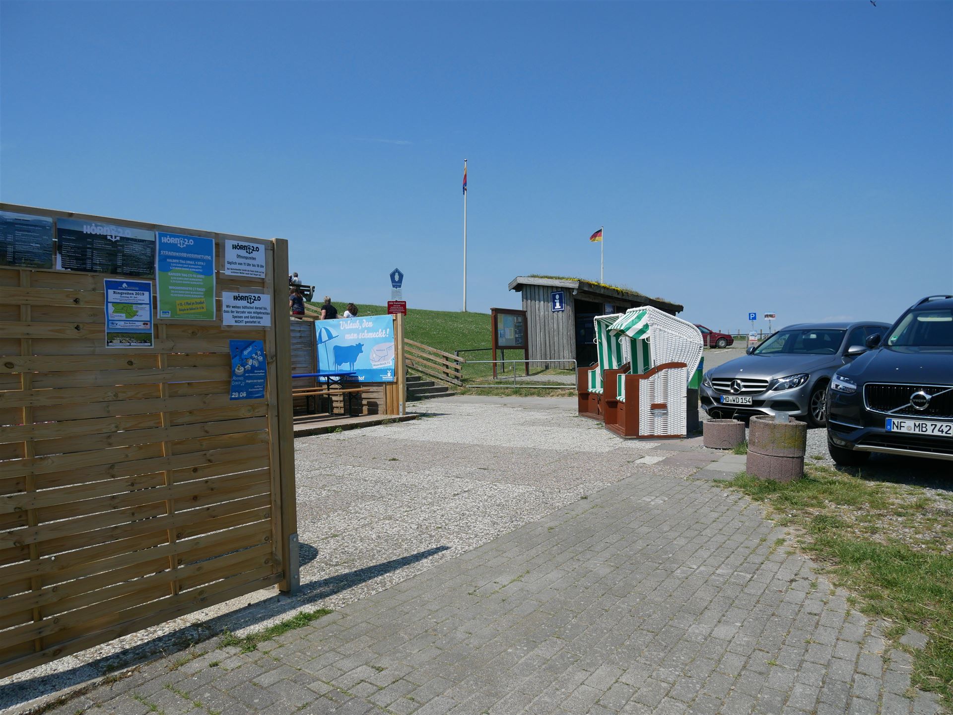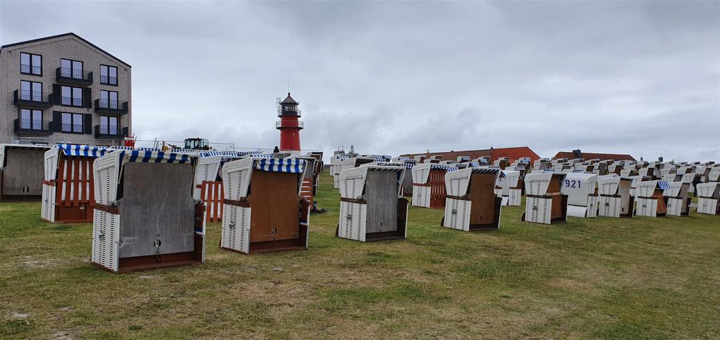 Müssten wir jetzt einen gemieteten Strandkorb selber über den Deich schleppen?