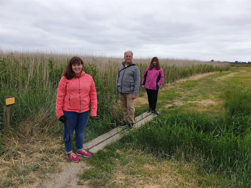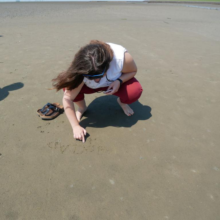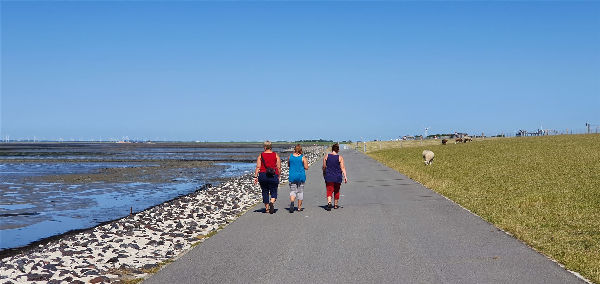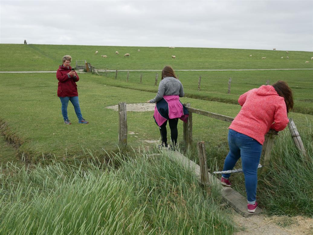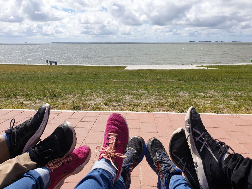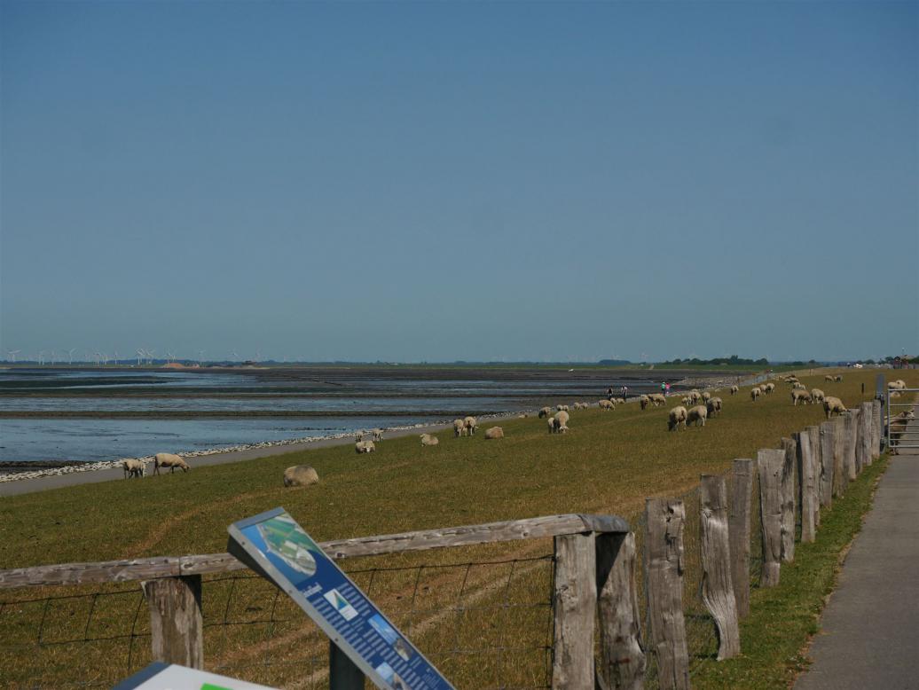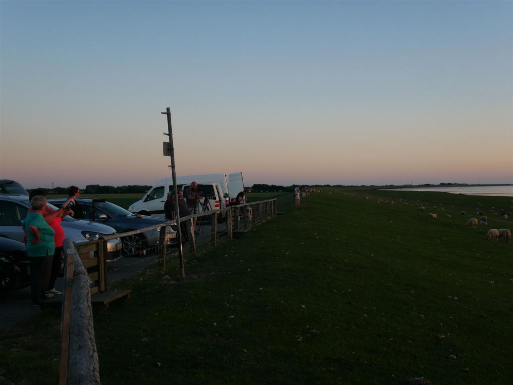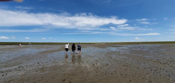 Der Parkplatz war sehr voll und als wir auf dem Deich standen, konnten wir die große Gruppe im Watt sehen.
