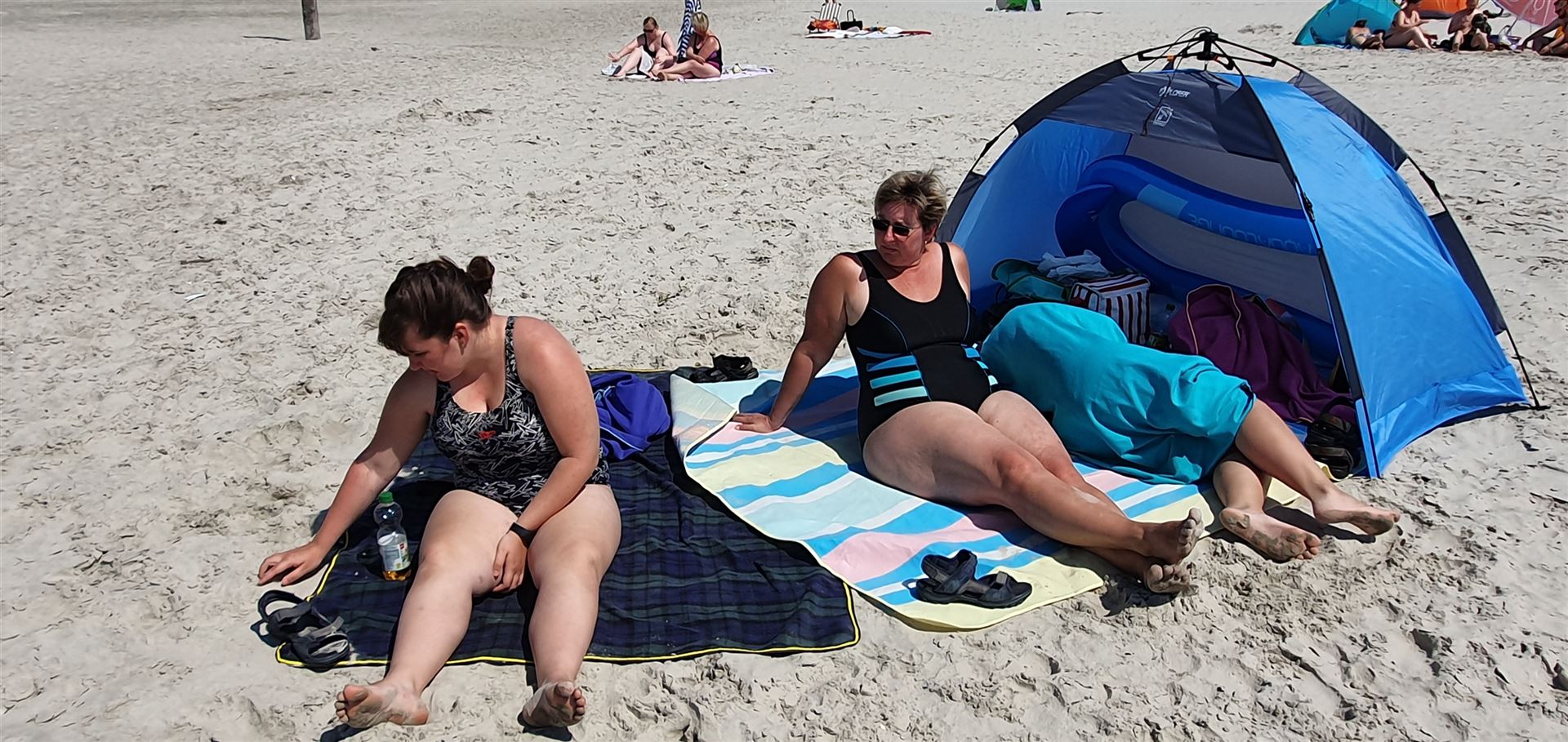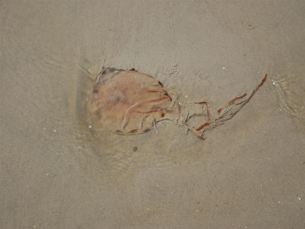 Andreas begleitete sie zur Badeaufsicht, wo ihr mit Badeschaum geholfen wurde. Der Bademeister erklärte uns, dass die Quallen harmlos sind und nur Menschen mit sensibler Haut auf diese reagieren.