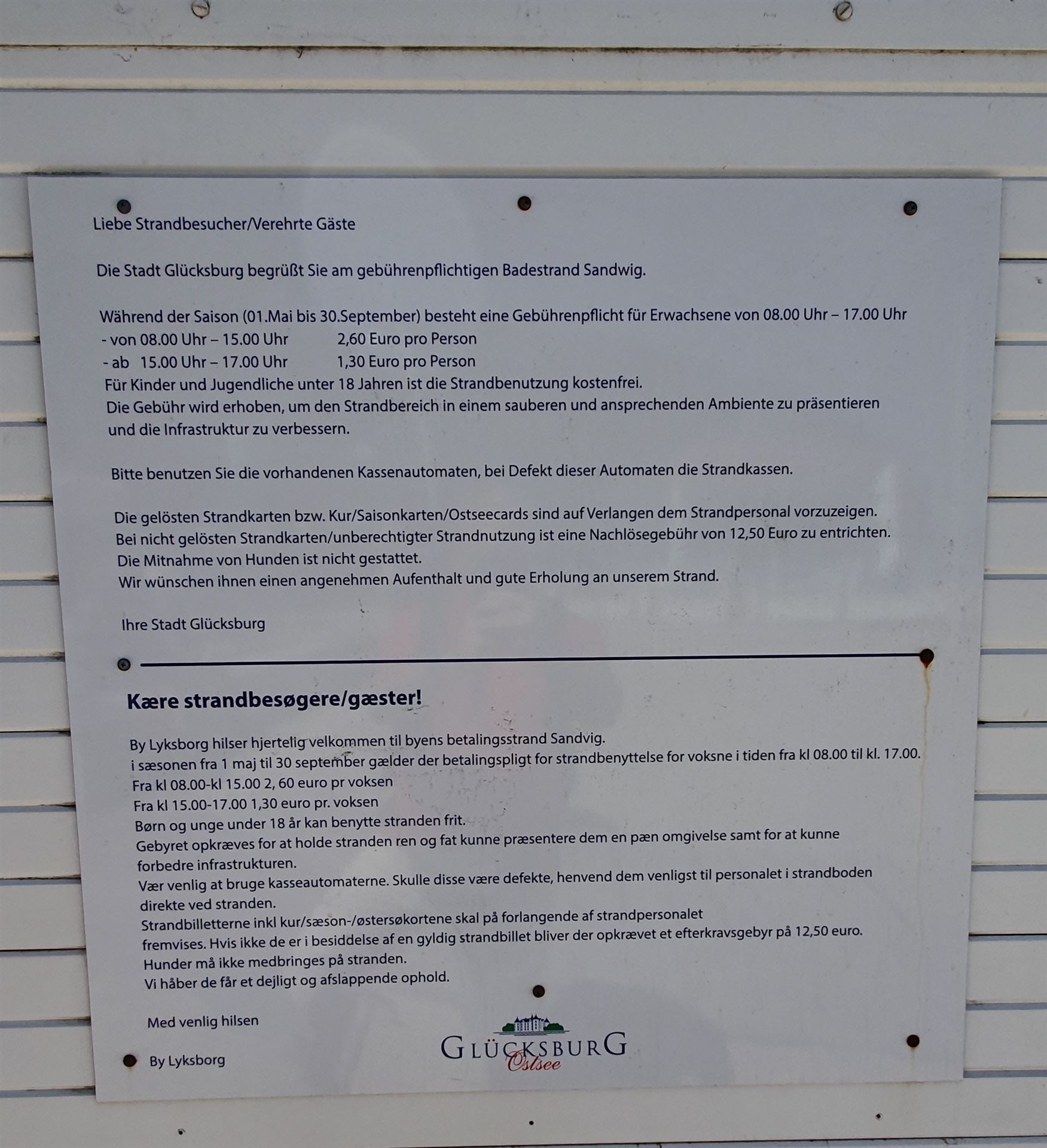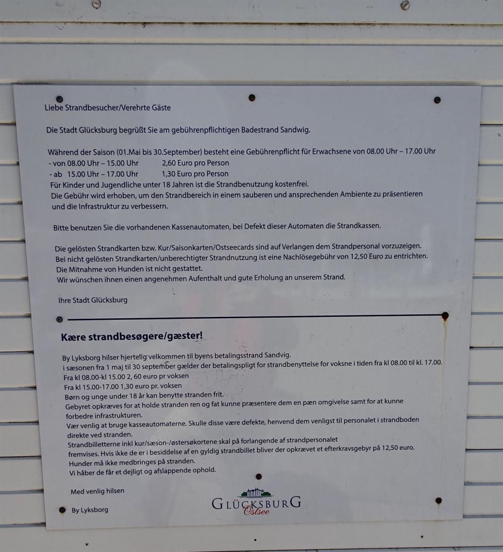 Am Strandbezahlhäuschen angekommen entdeckten wir die folgende Tafel: