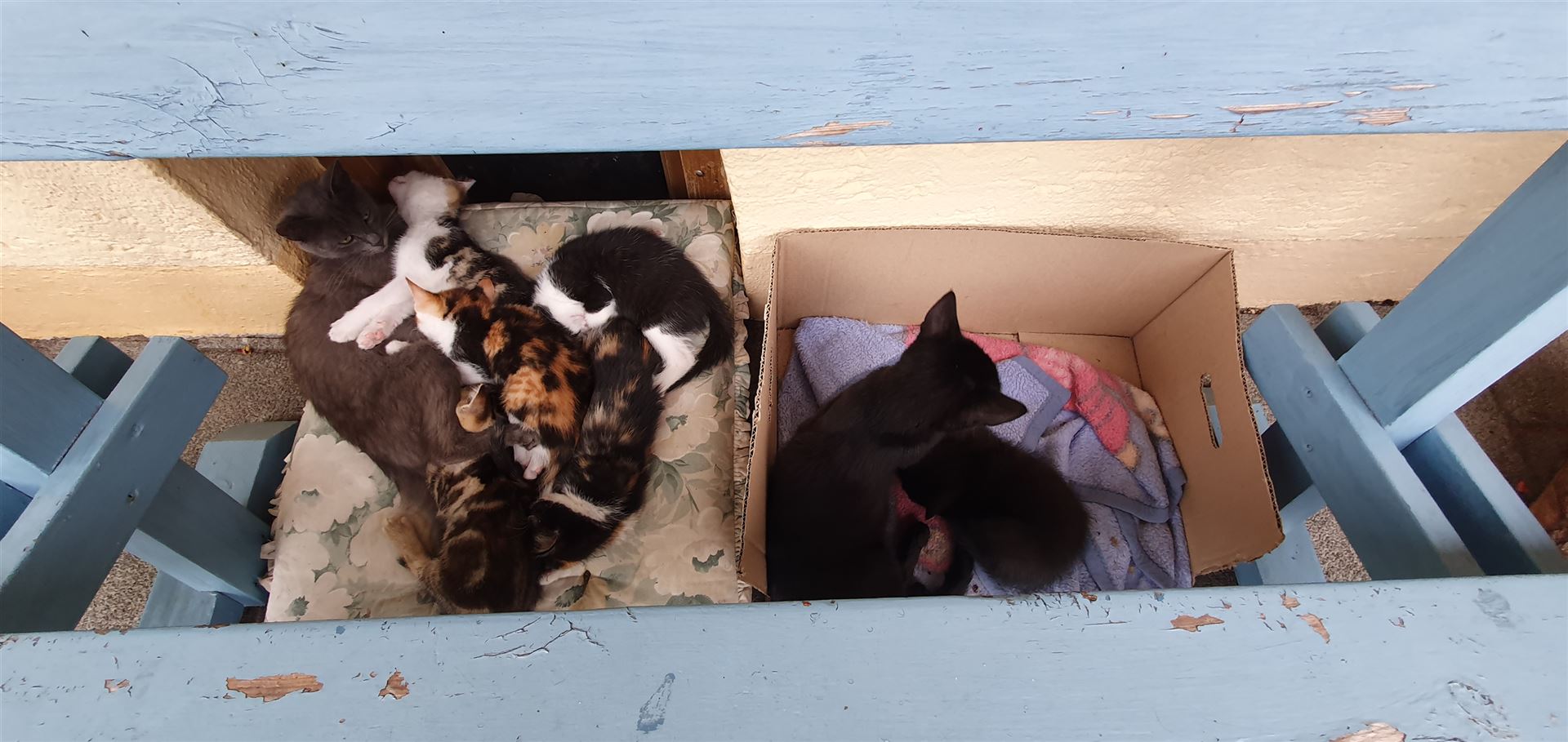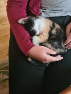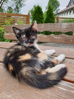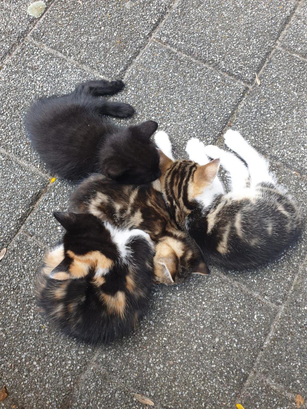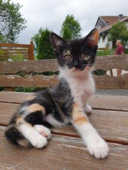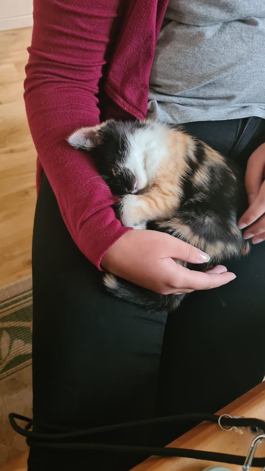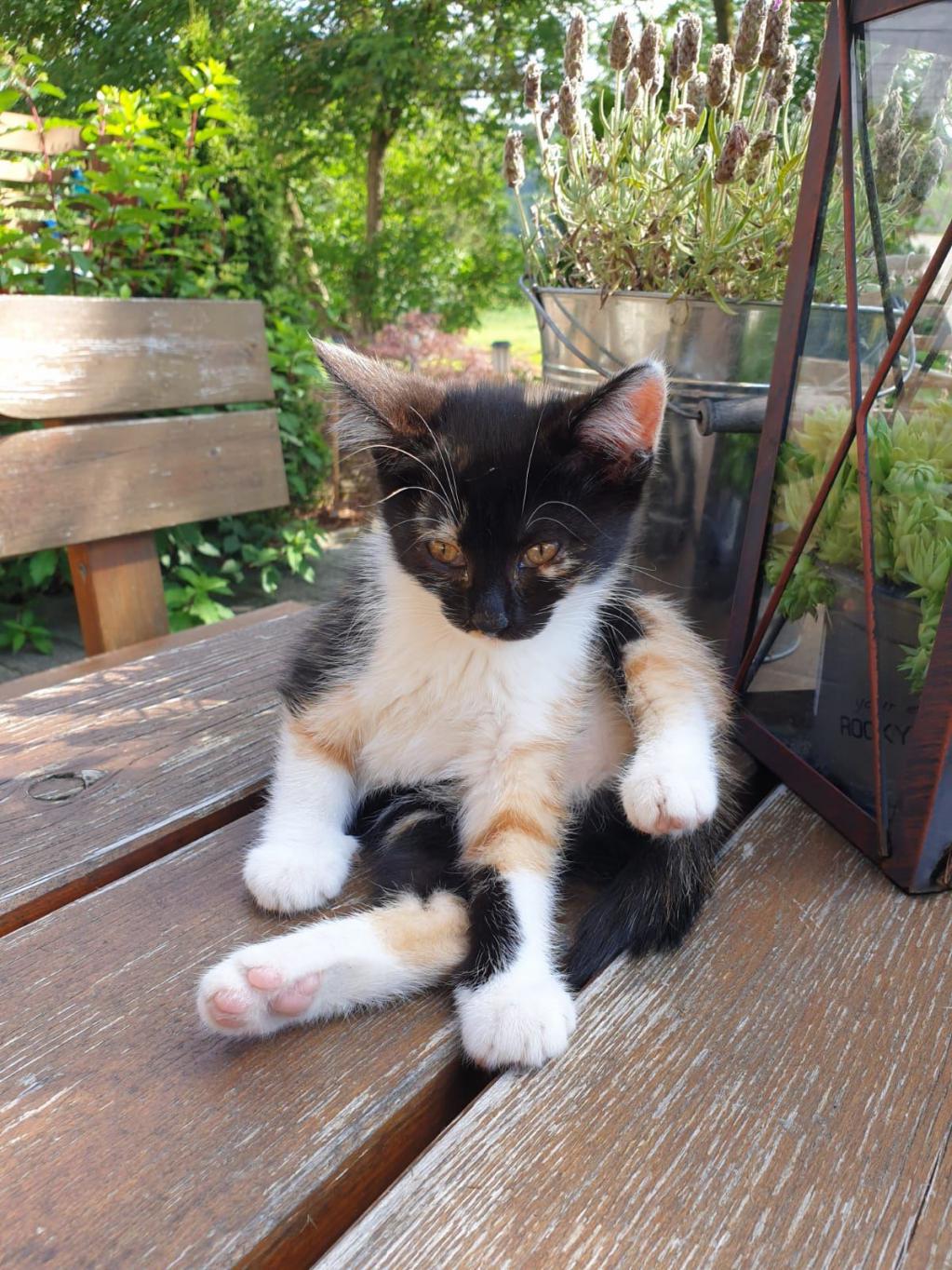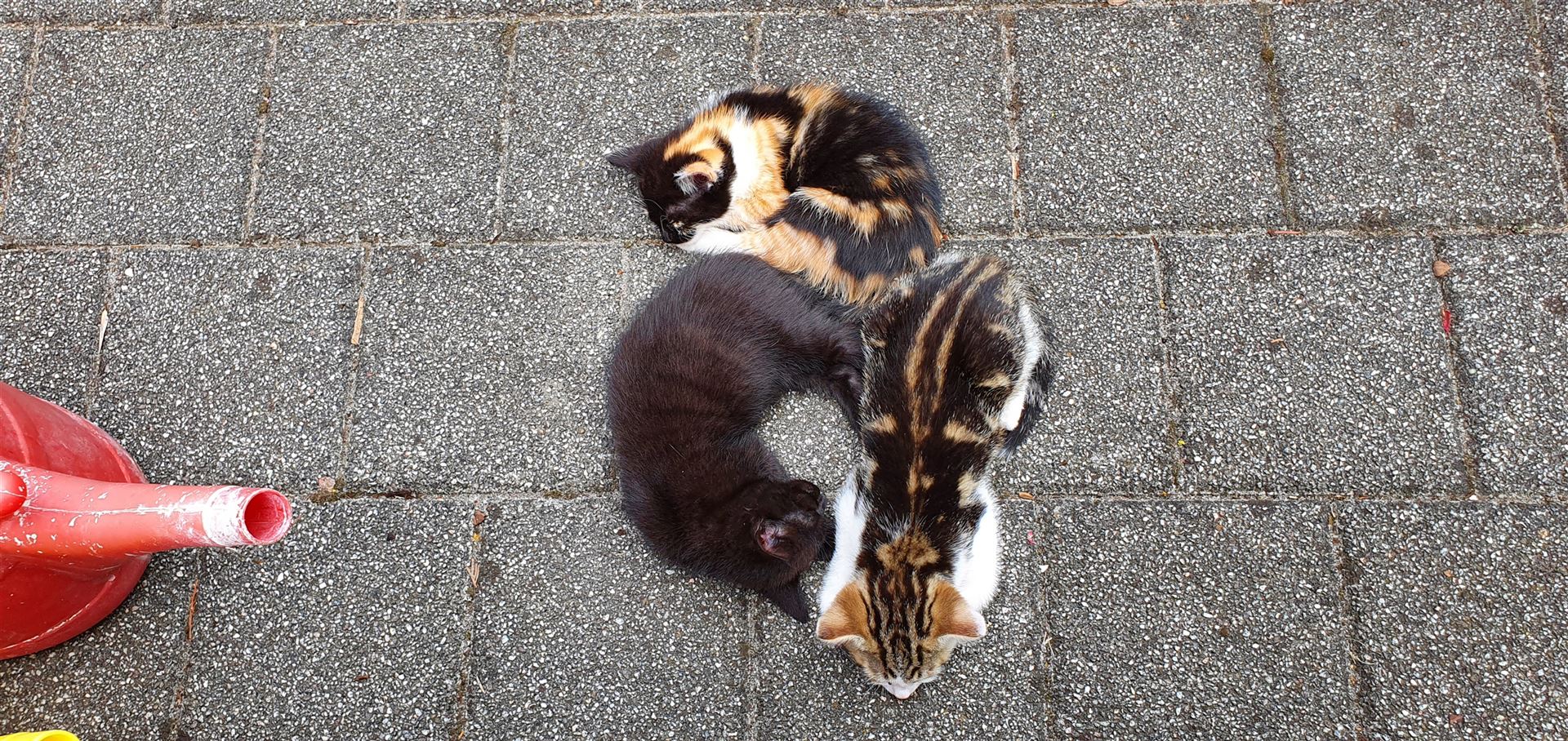 Leonie schaute unten auch mal kurz vorbei, ob die beiden noch lebten. Dabei kuschelte sie mit der letzten kleinen Katze.