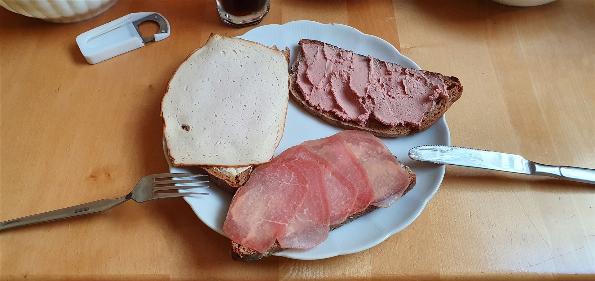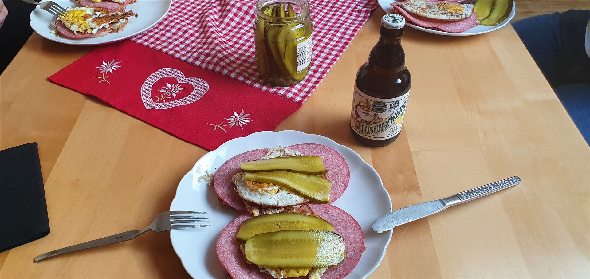 Zum Abendessen gab es natürlich das leckere frische Brot, welches in Form eines strammen Maxes vertilgt wurde.