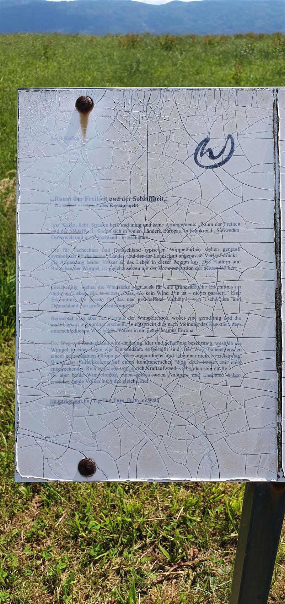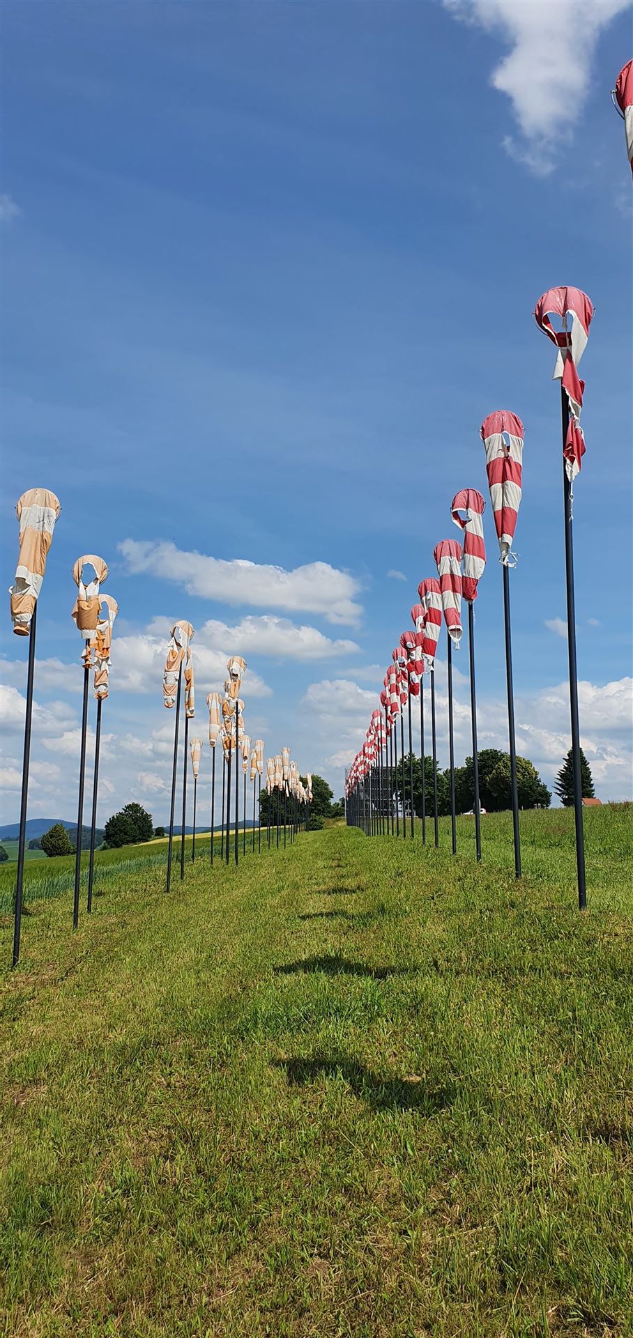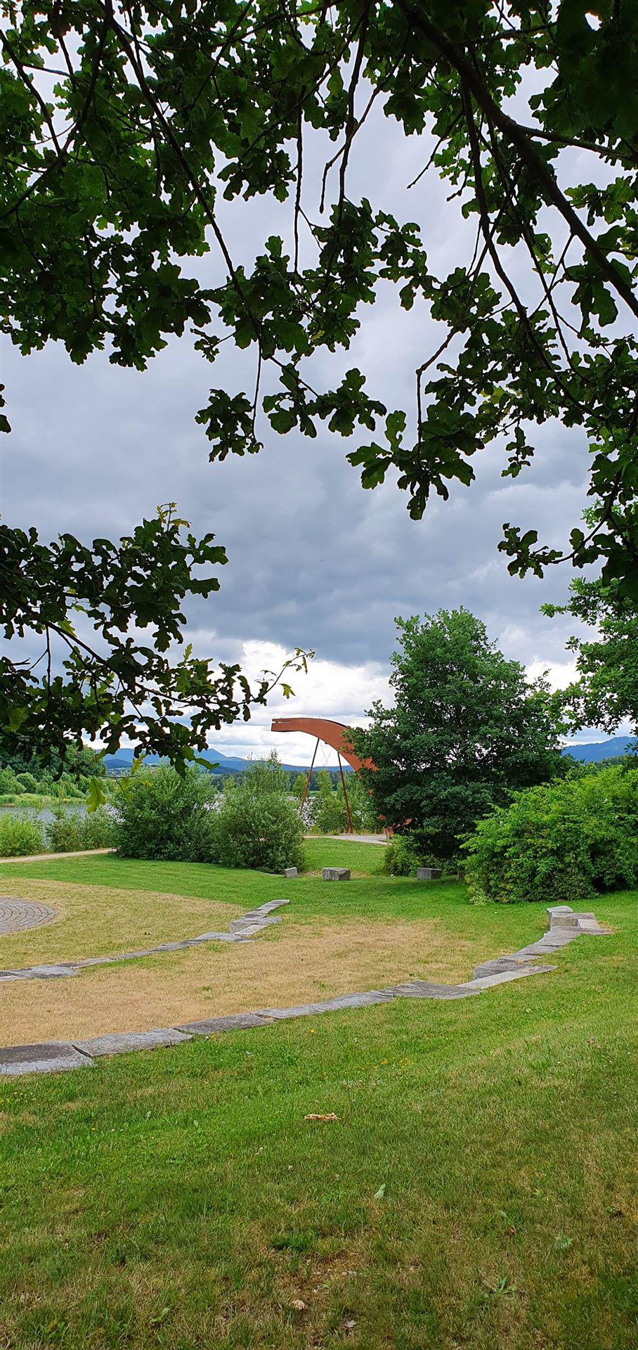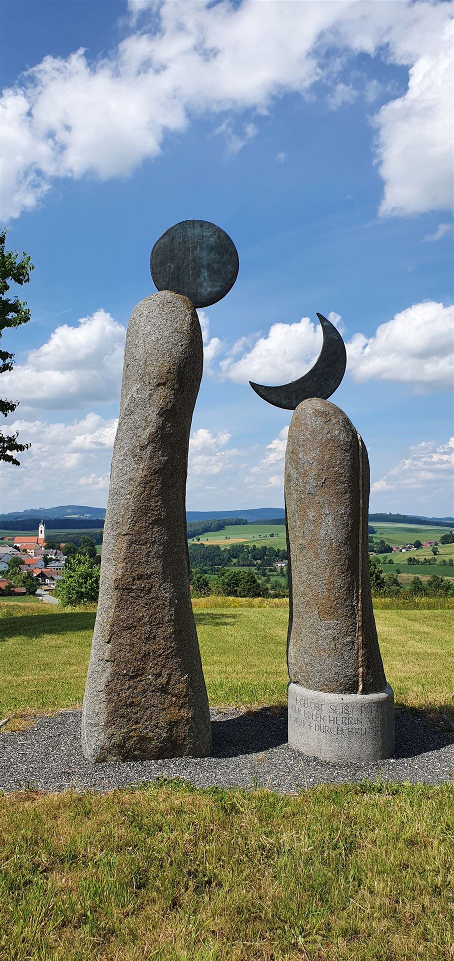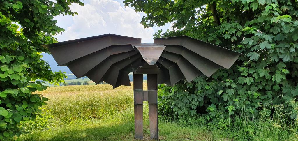 Da es sich um einen Kunstwanderweg handelte, machten wir uns jetzt an die Wanderung. Mit Umwegen kamen wir am nächsten Kunstobjekt an, da die Wegbeschilderung mangelhaft war.